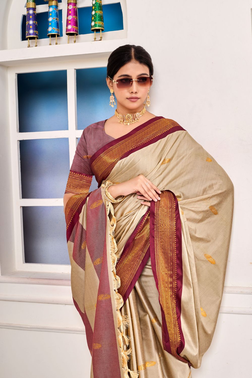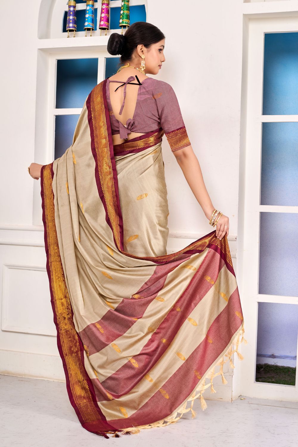 - Beige Royal Paithni Cotton Silk Gold Weaving Border