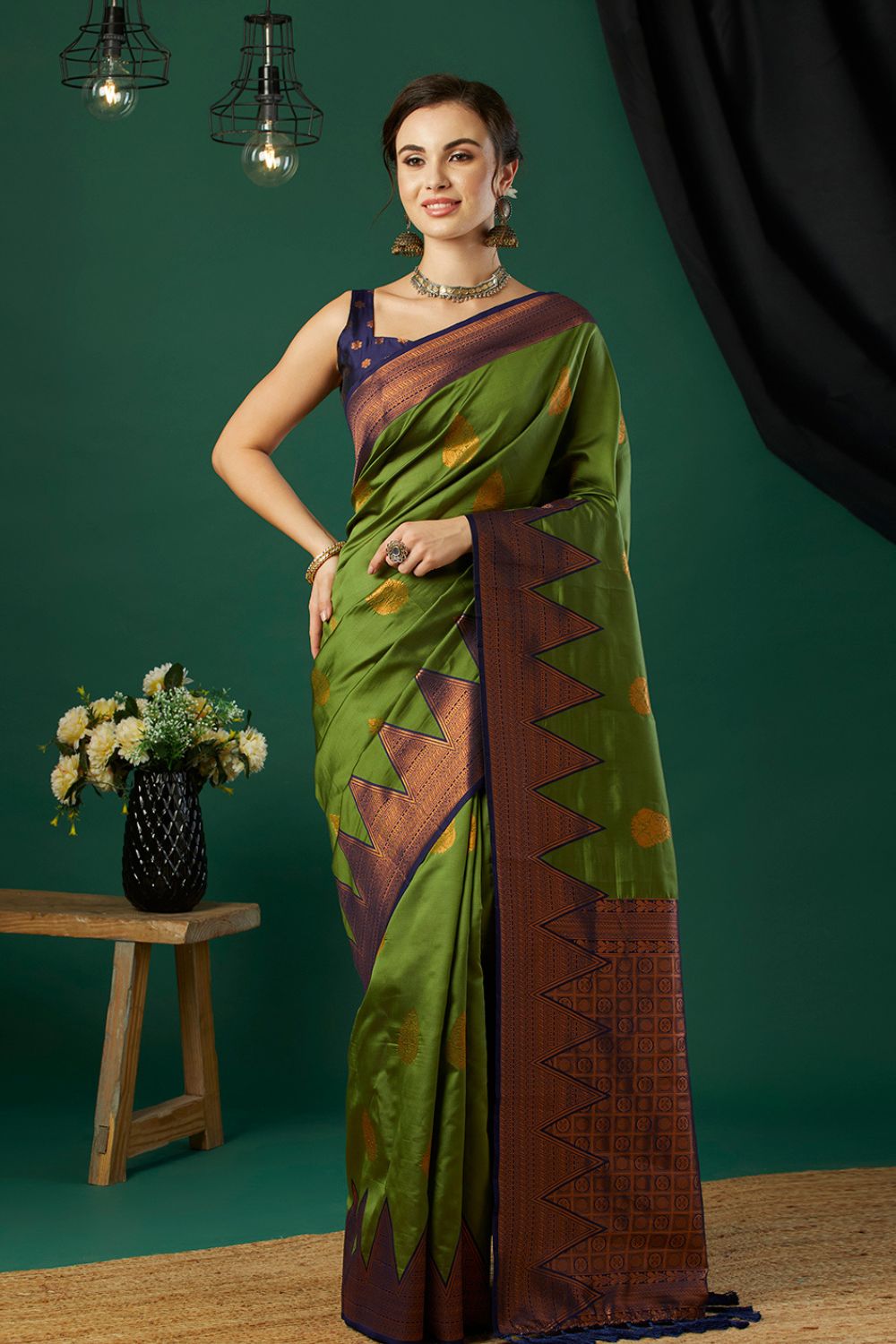 - Green banarasi saree