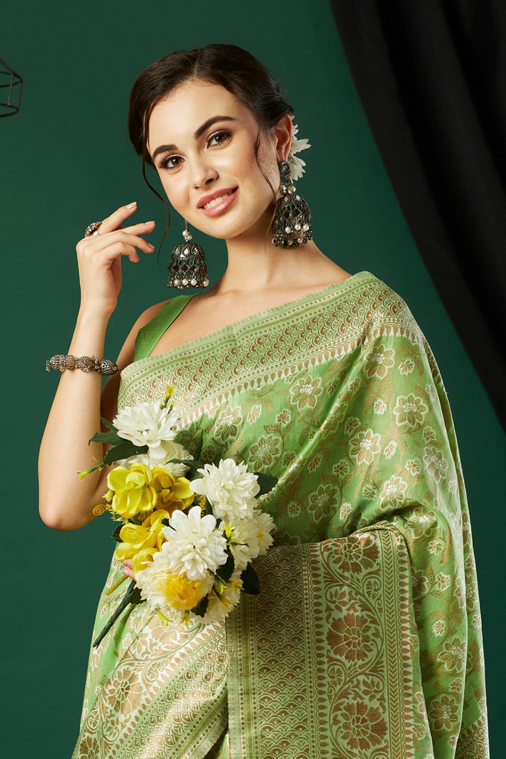 Green Soft Linen Cotton Saree