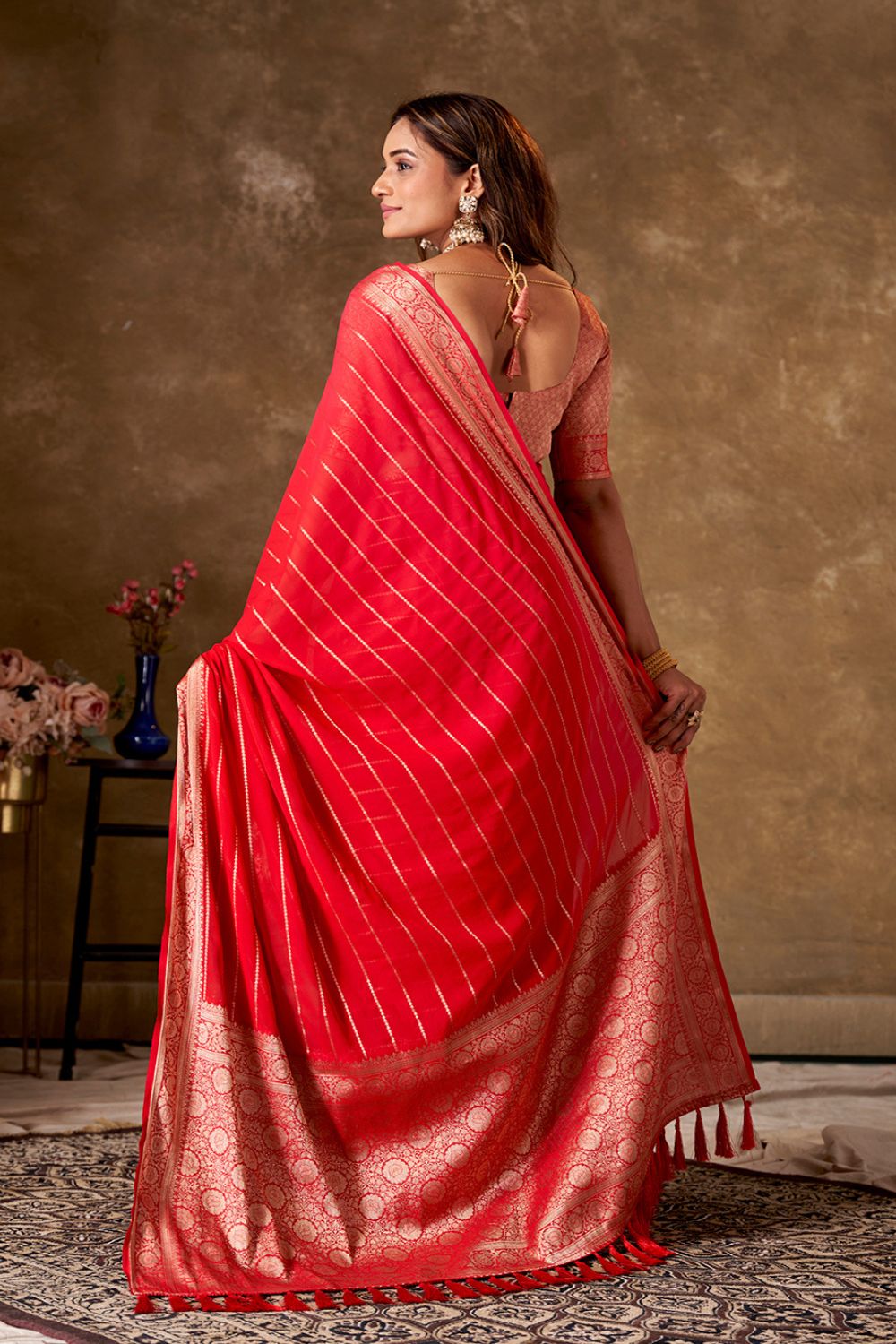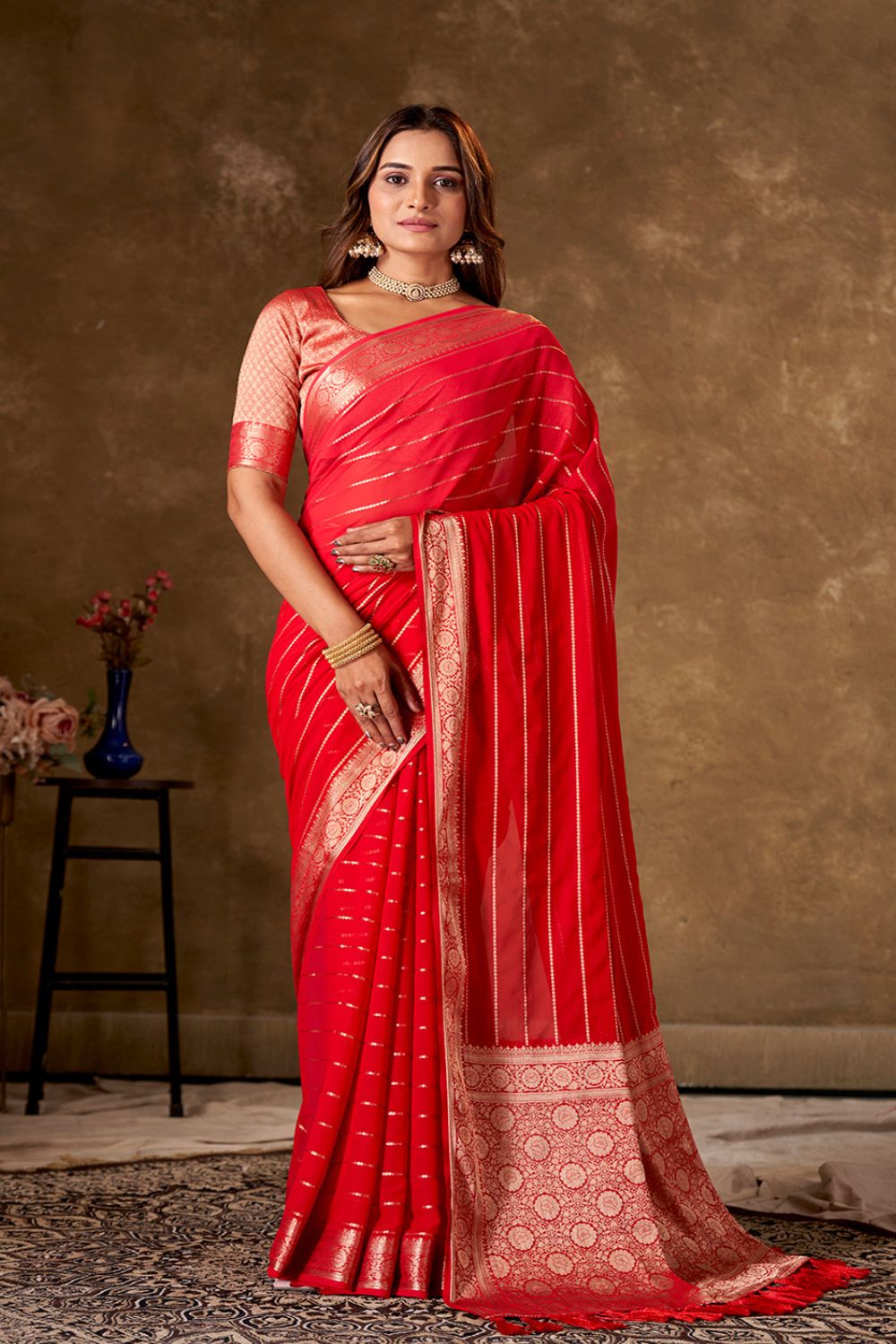 Discover elegance redefined with our exquisite collection of Georgette Silk Sarees. Crafted with precision and adorned with timeless designs, our sarees epitomize grace and sophistication. Elevate your style with the luxurious feel and captivating allure of Georgette Silk.