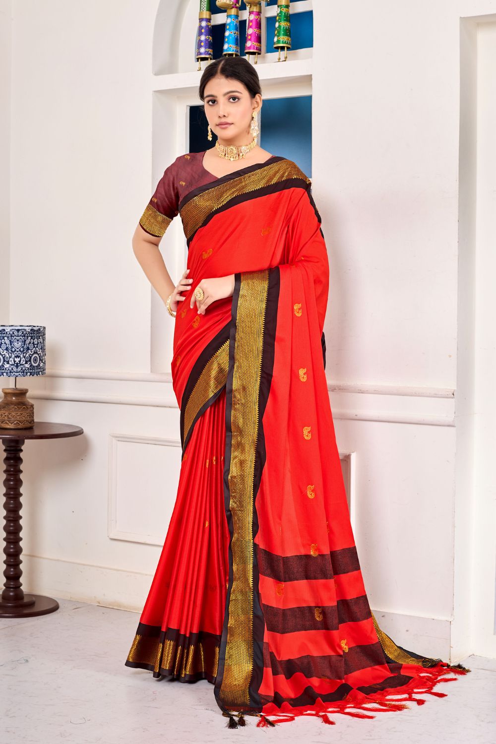 - Red Royal Paithni Cotton Silk Gold Weaving Border