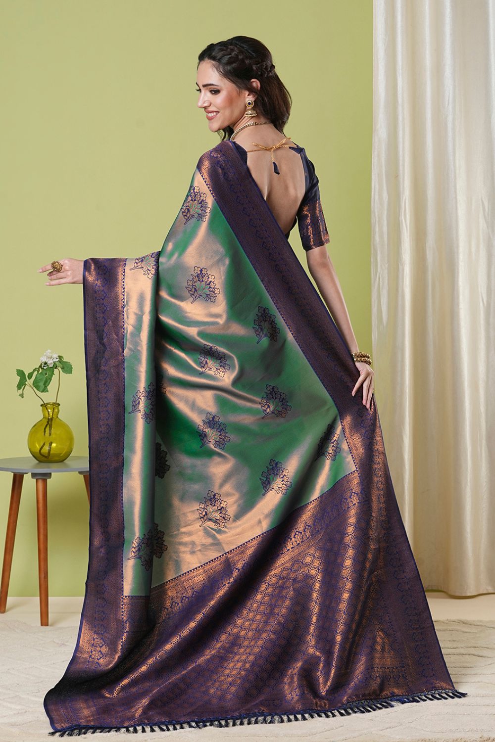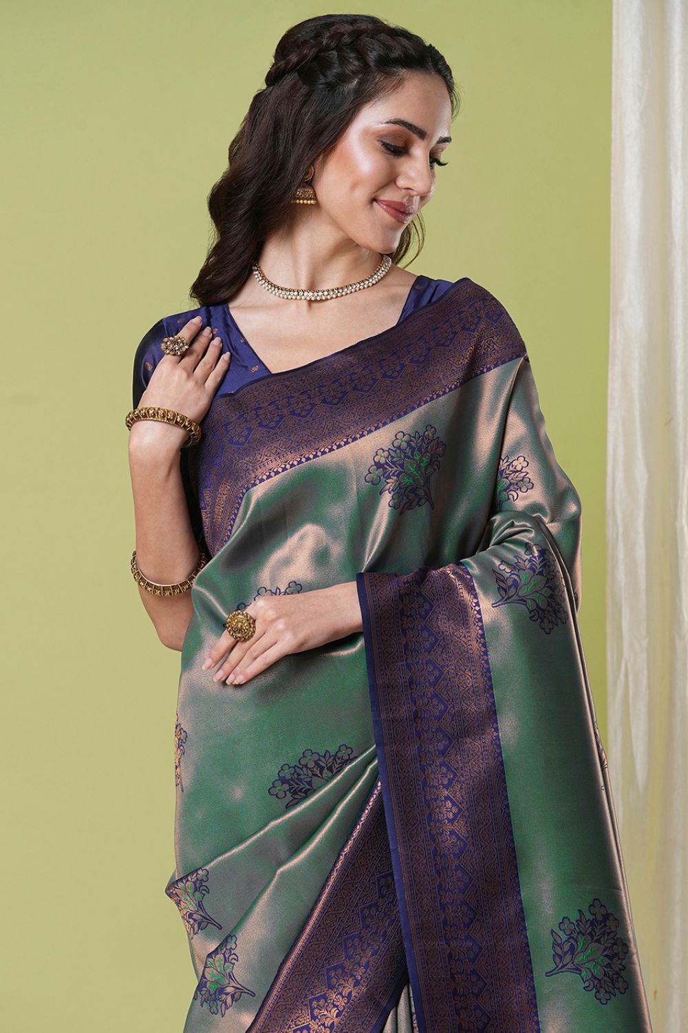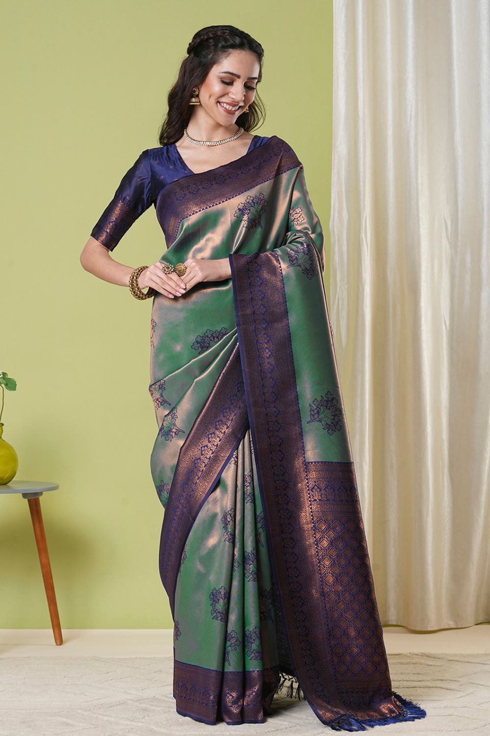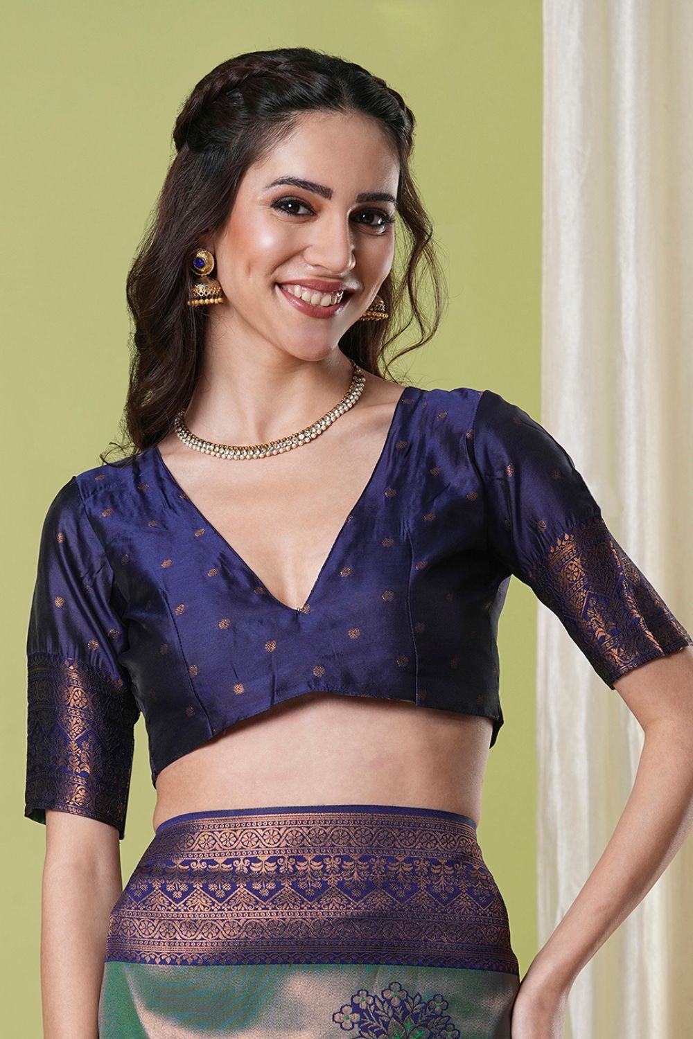 The blouse worn by the model might be for modelling purpose only. Check the image of the blouse piece to understand how the actual blouse piece looks like.