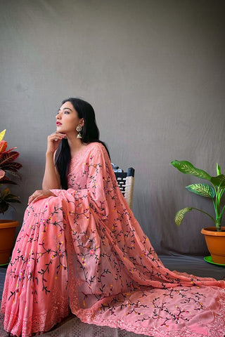 Peach Pure Linen Weaving Saree