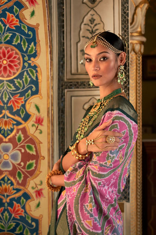 Peach Handloom Weaving Silk Saree
