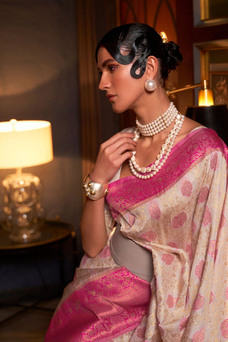 Light Pink Pure Katan Handloom Weaving Silk Saree