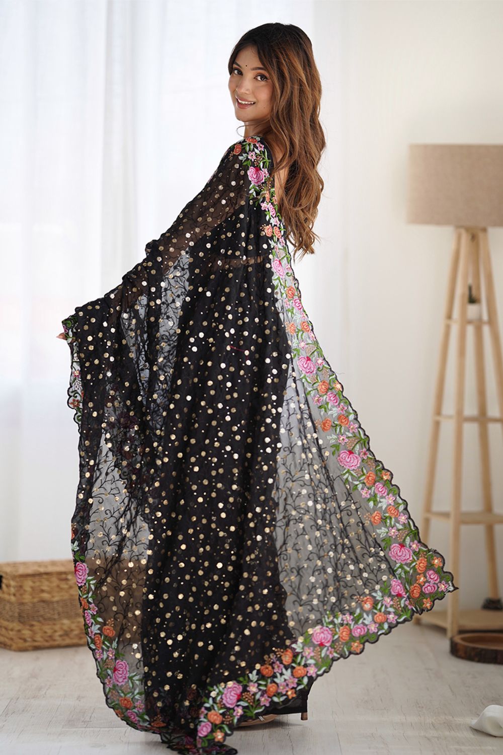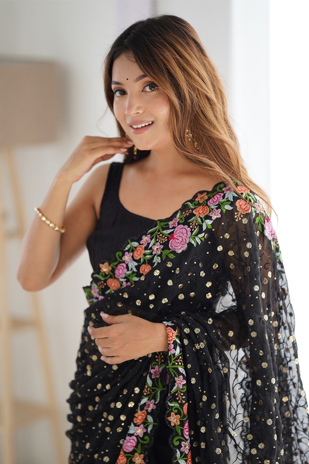 - Pure georgette silk saree having beautiful flowers work and cutwork of matching thread work