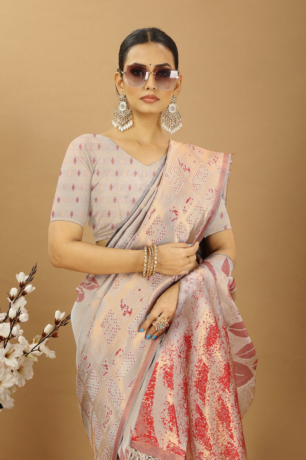 The blouse worn by the model might be for modelling purpose only. Check the image of the blouse piece to understand how the actual blouse piece looks like.