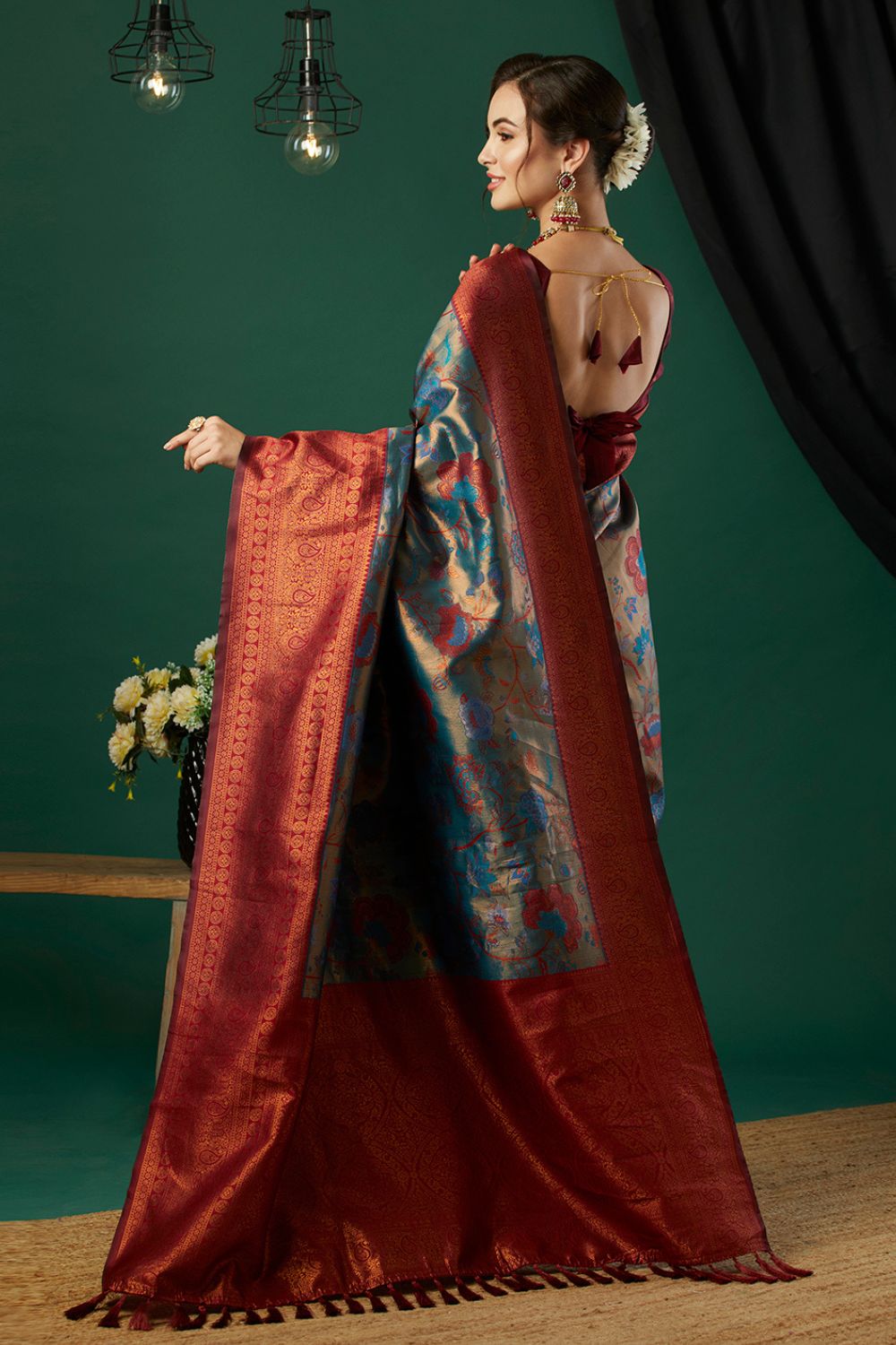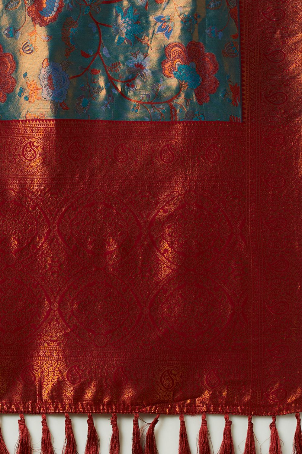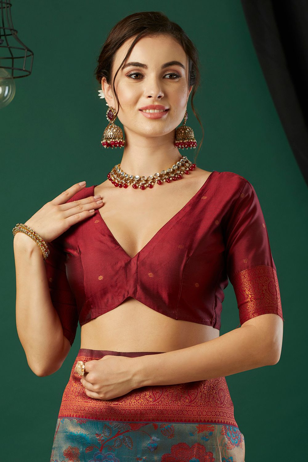 The blouse worn by the model might be for modelling purpose only. Check the image of the blouse piece to understand how the actual blouse piece looks like.