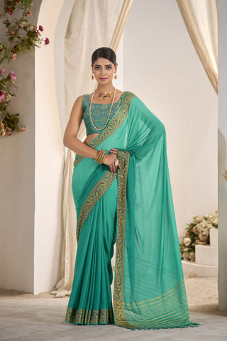 Green Chanderi French Creap Embroidery Kurta set