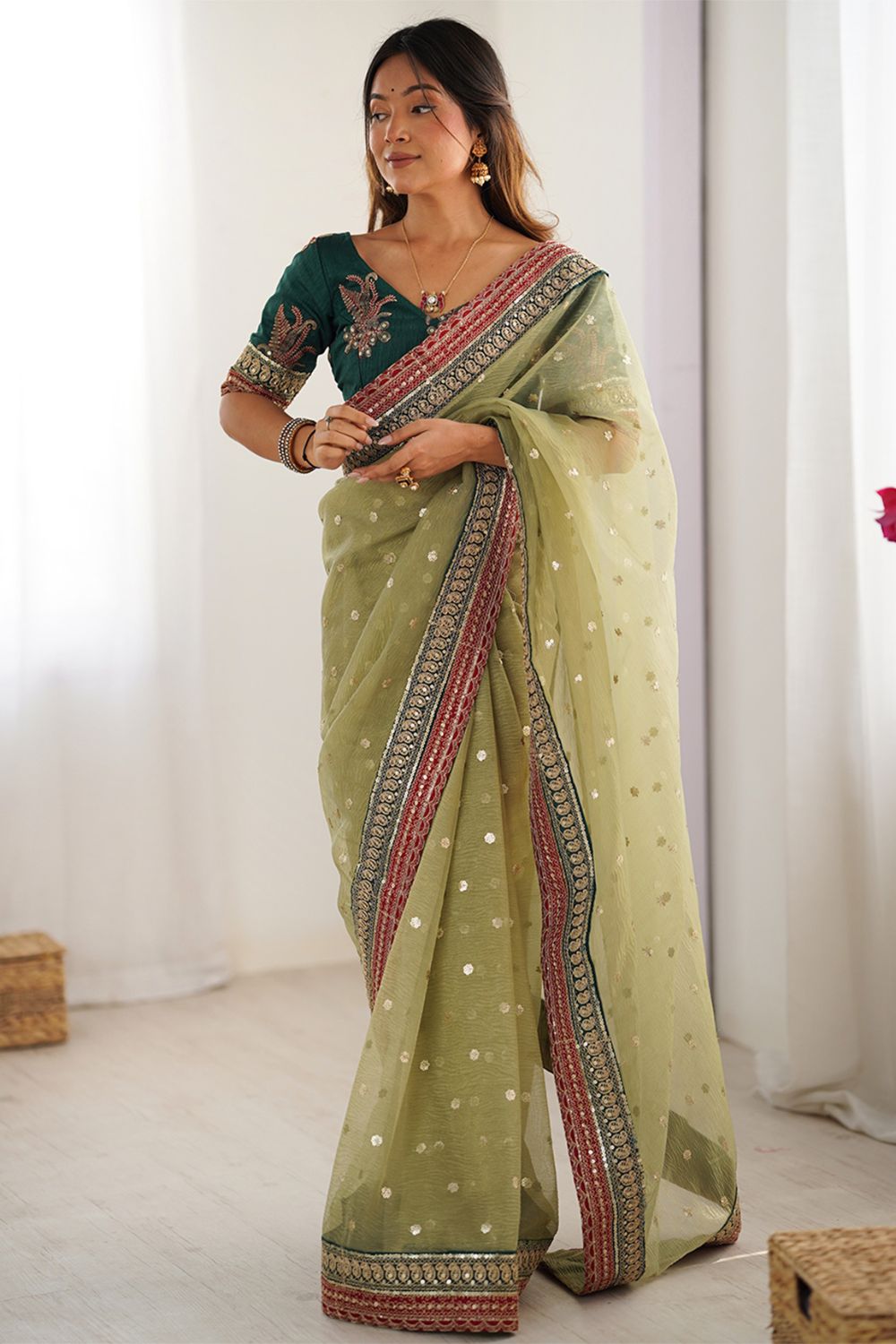Green Banarasi Crush Silk Saree
