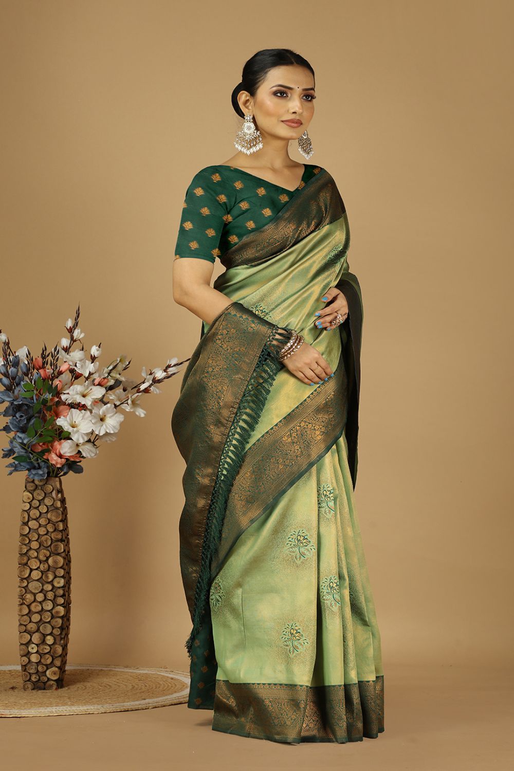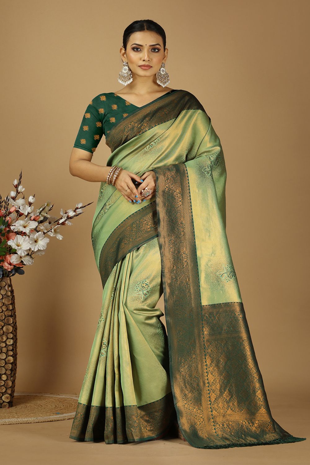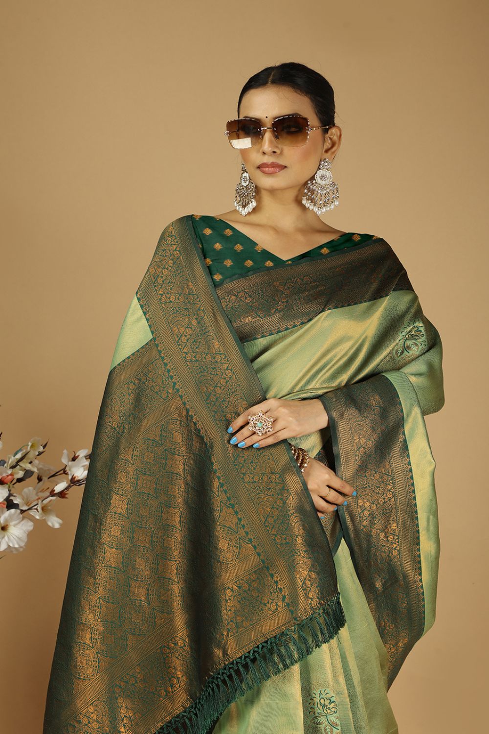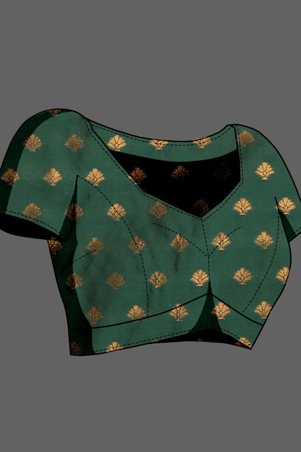 The blouse worn by the model might be for modelling purpose only. Check the image of the blouse piece to understand how the actual blouse piece looks like.