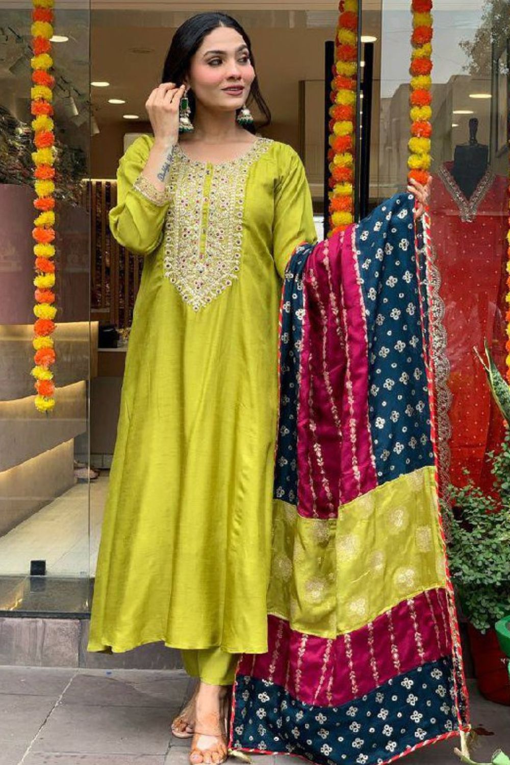 Green Viscose Chanderi Jacquard Embroidery Kurta Set