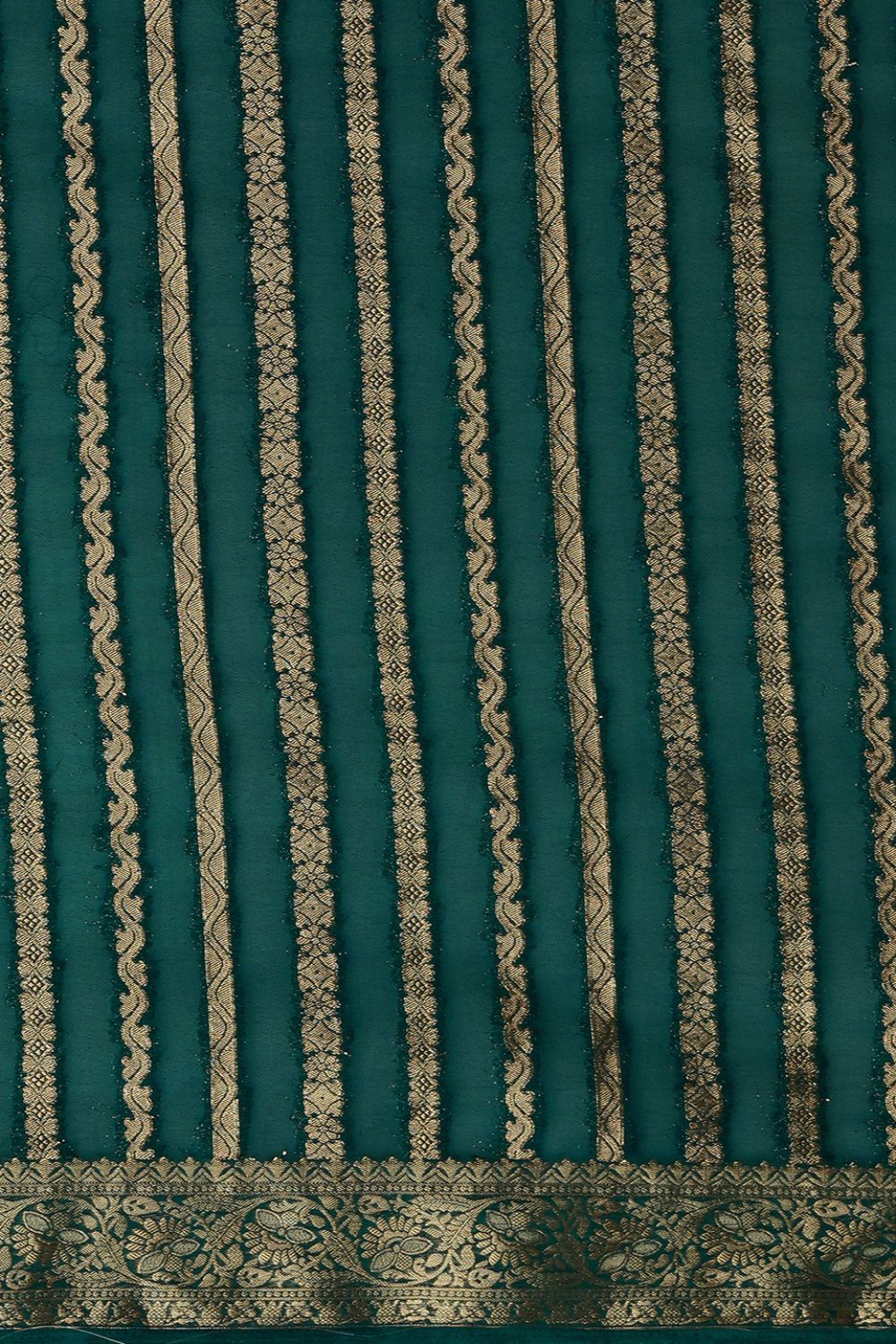 Teal Green Pure Georgette with Gold Zari Work