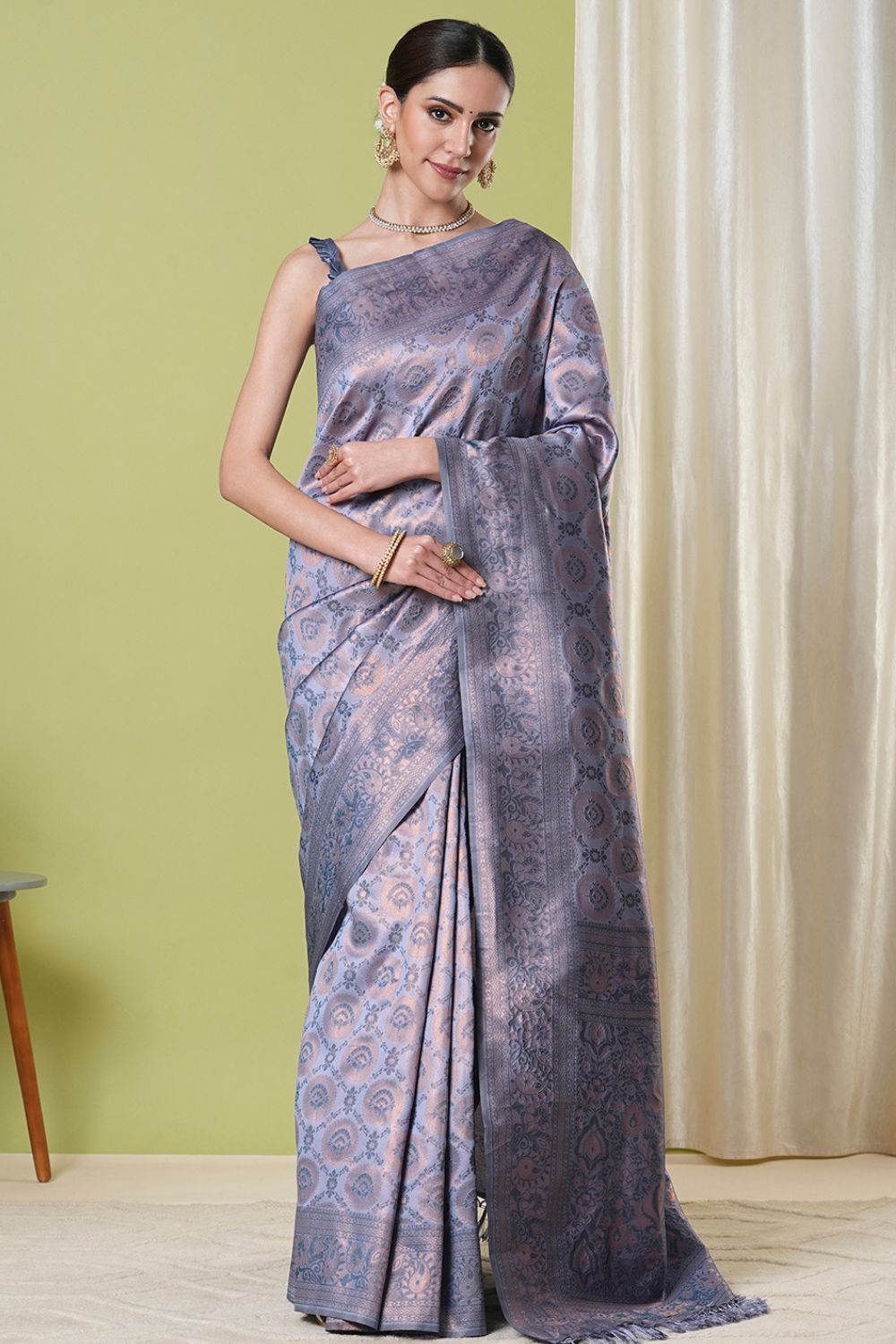 - Grey Banarasi Silk Saree