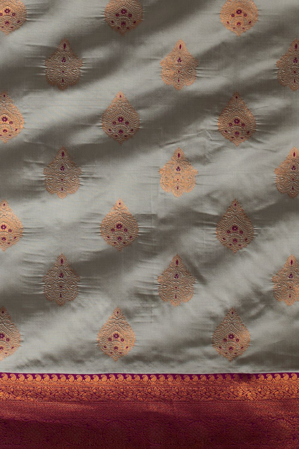 - Border & Pallu: Rich Maroon with intricate zari weaving