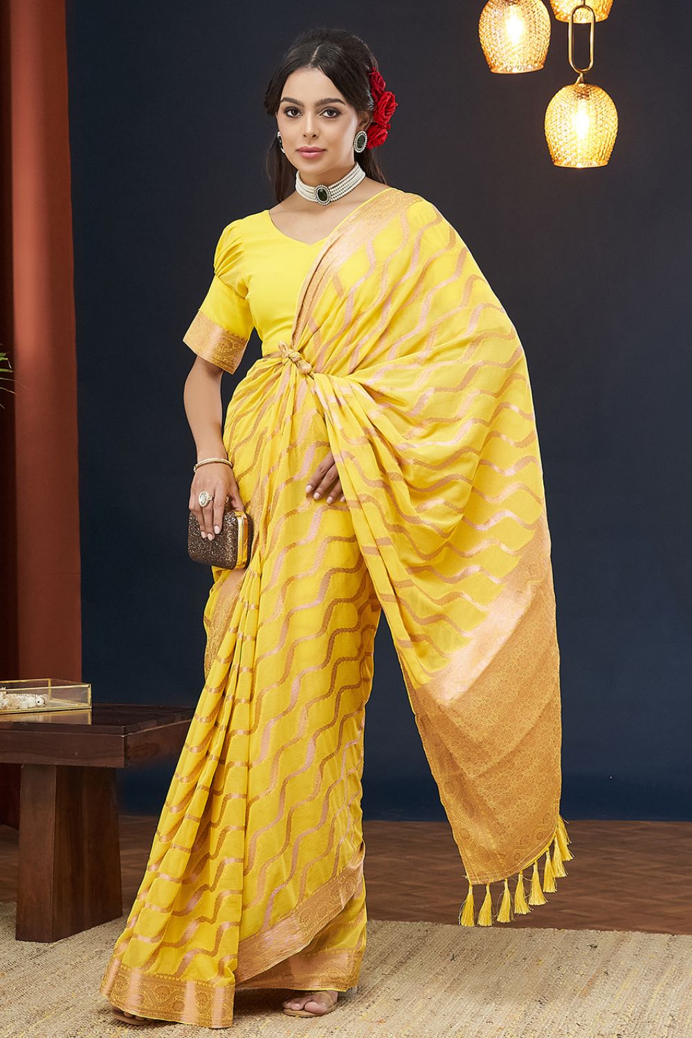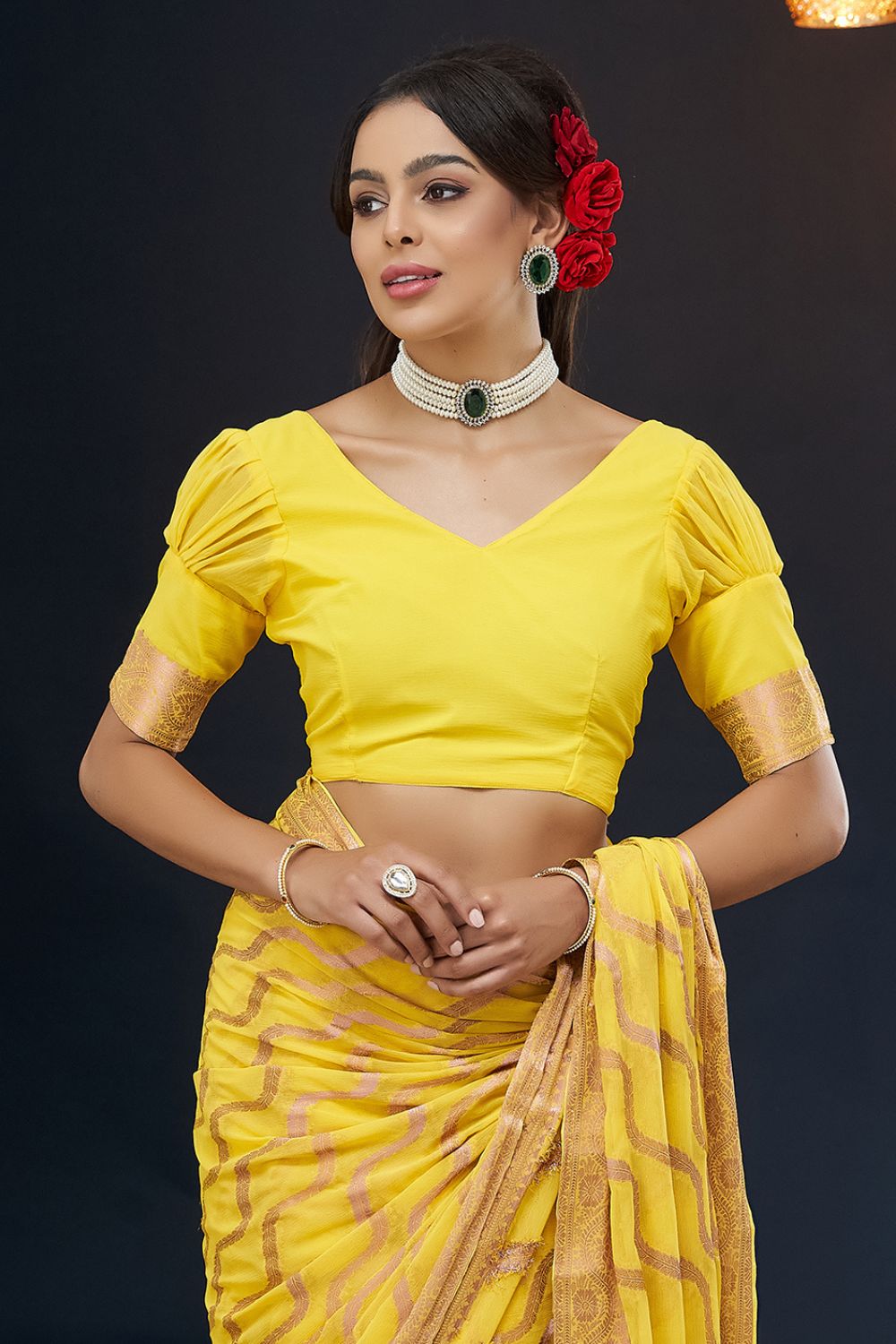 The blouse worn by the model might be for modelling purpose only. Check the image of the blouse piece to understand how the actual blouse piece looks like.