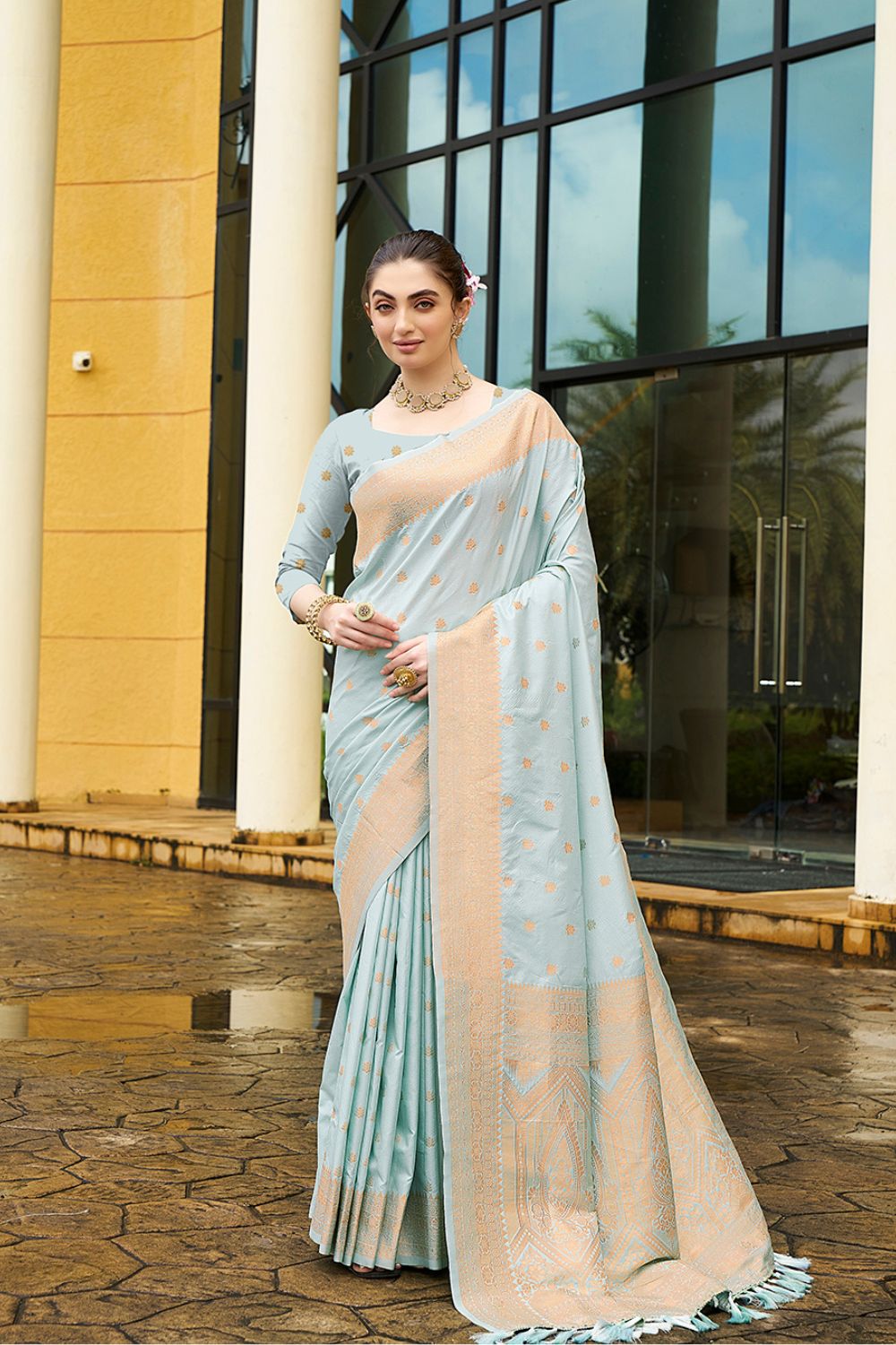 Discover Nylon Satin Weaving Jacquard Saree blends luxurious shine with intricate woven patterns, offering elegance for every celebration. Its smooth satin finish provides a graceful drape, while the jacquard detailing adds richness and style. Perfect for weddings, parties, and festive occasions, this saree beautifully combines tradition with modern sophistication.