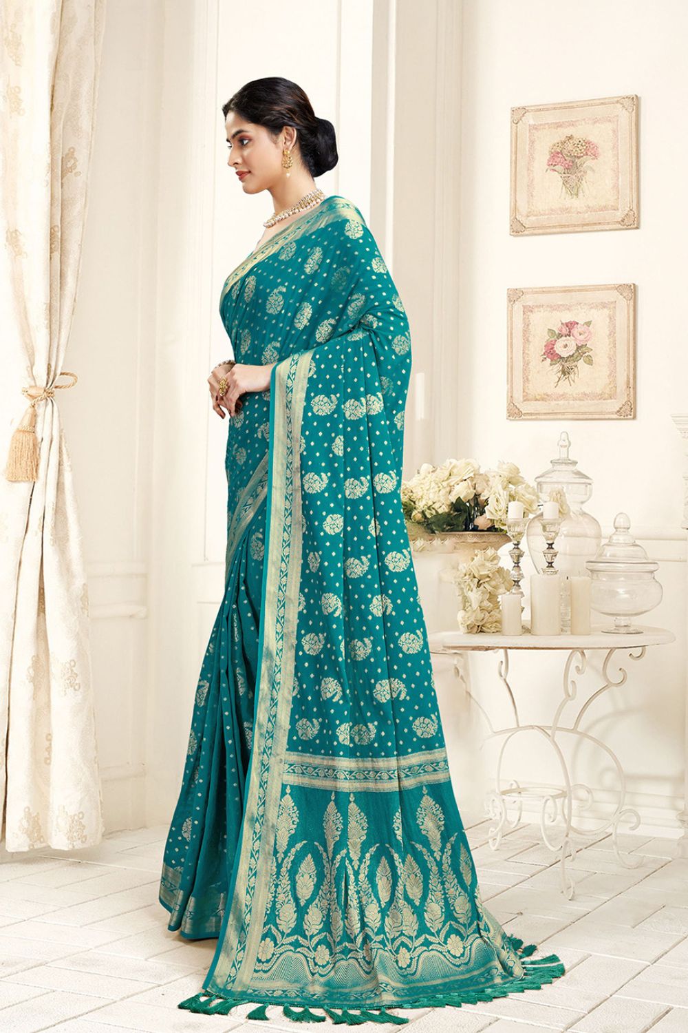 Discover elegance redefined with our exquisite collection of Georgette Silk Sarees. Crafted with precision and adorned with timeless designs, our sarees epitomize grace and sophistication. Elevate your style with the luxurious feel and captivating allure of Georgette Silk.