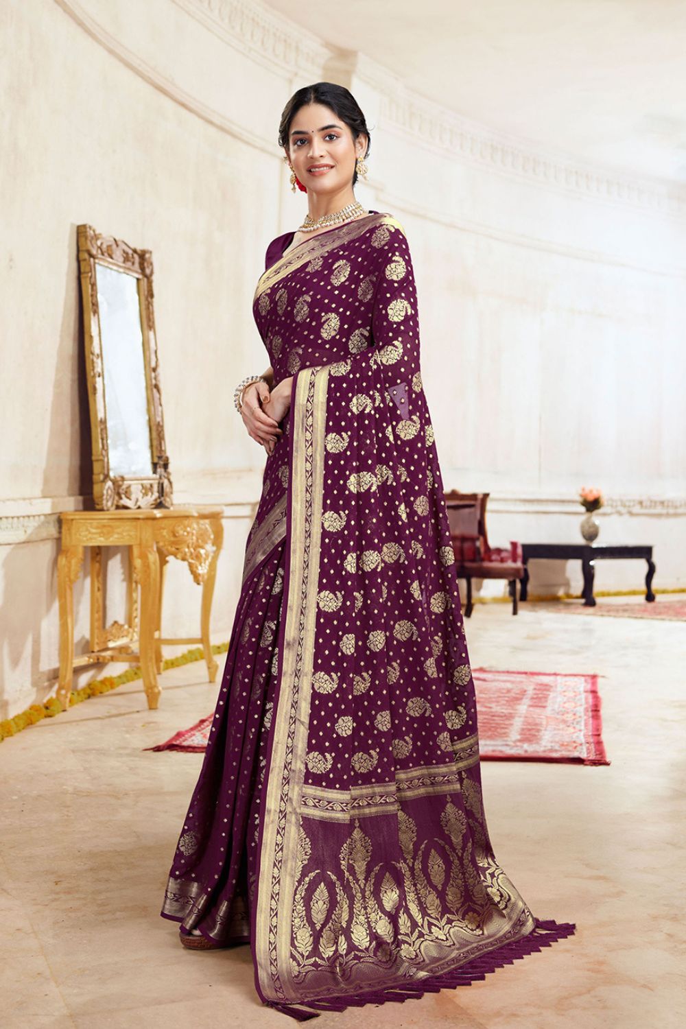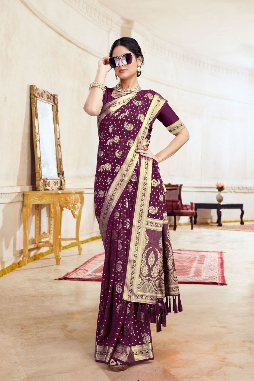 • Purple Georgette saree
