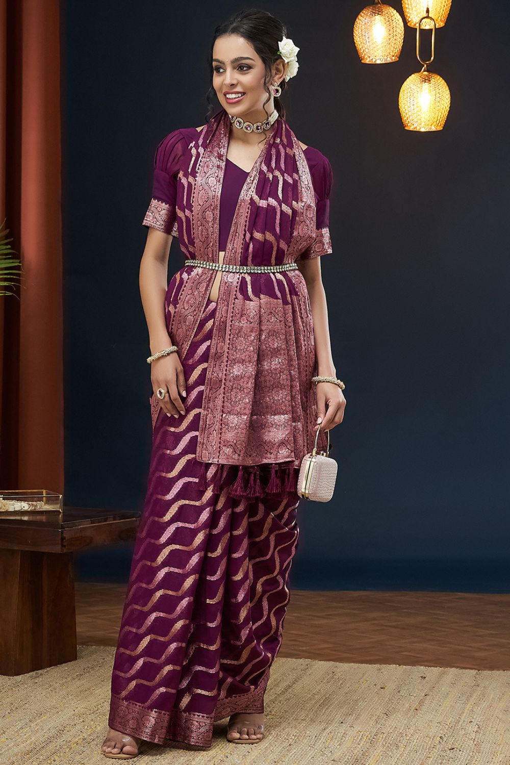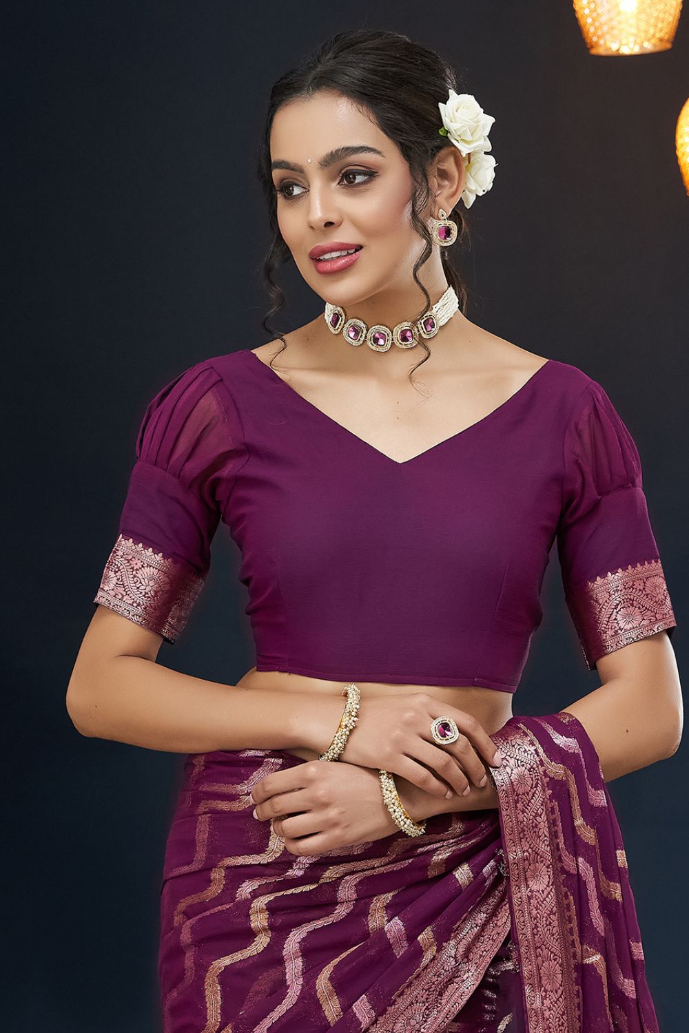 The blouse worn by the model might be for modelling purpose only. Check the image of the blouse piece to understand how the actual blouse piece looks like.