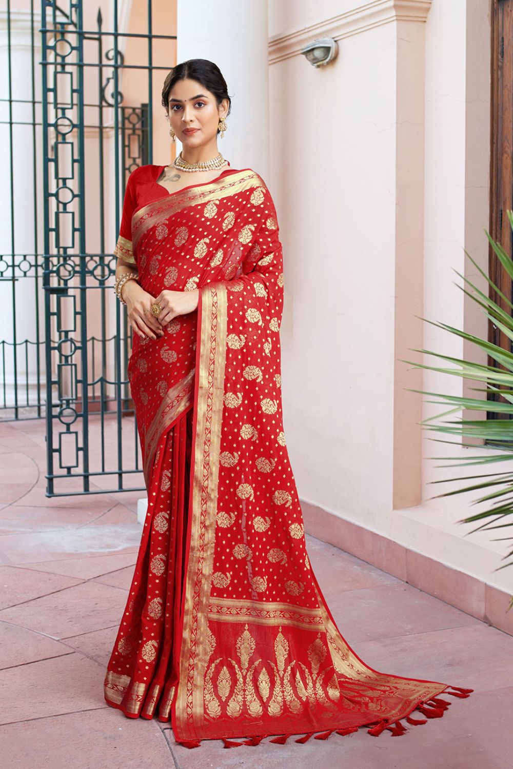 Discover elegance redefined with our exquisite collection of Georgette Silk Sarees. Crafted with precision and adorned with timeless designs, our sarees epitomize grace and sophistication. Elevate your style with the luxurious feel and captivating allure of Georgette Silk.