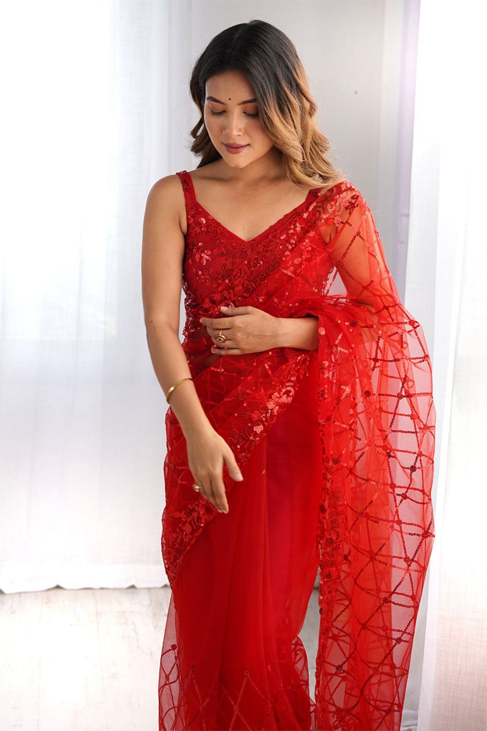 The Soft Net with Zalar Lace Silk Saree is a blend of elegance and charm. Crafted with delicate net fabric and enhanced with rich silk, it features intricate zalar lace borders that add a graceful finish. Perfect for weddings, parties, and festive occasions, this saree exudes sophistication and timeless beauty.