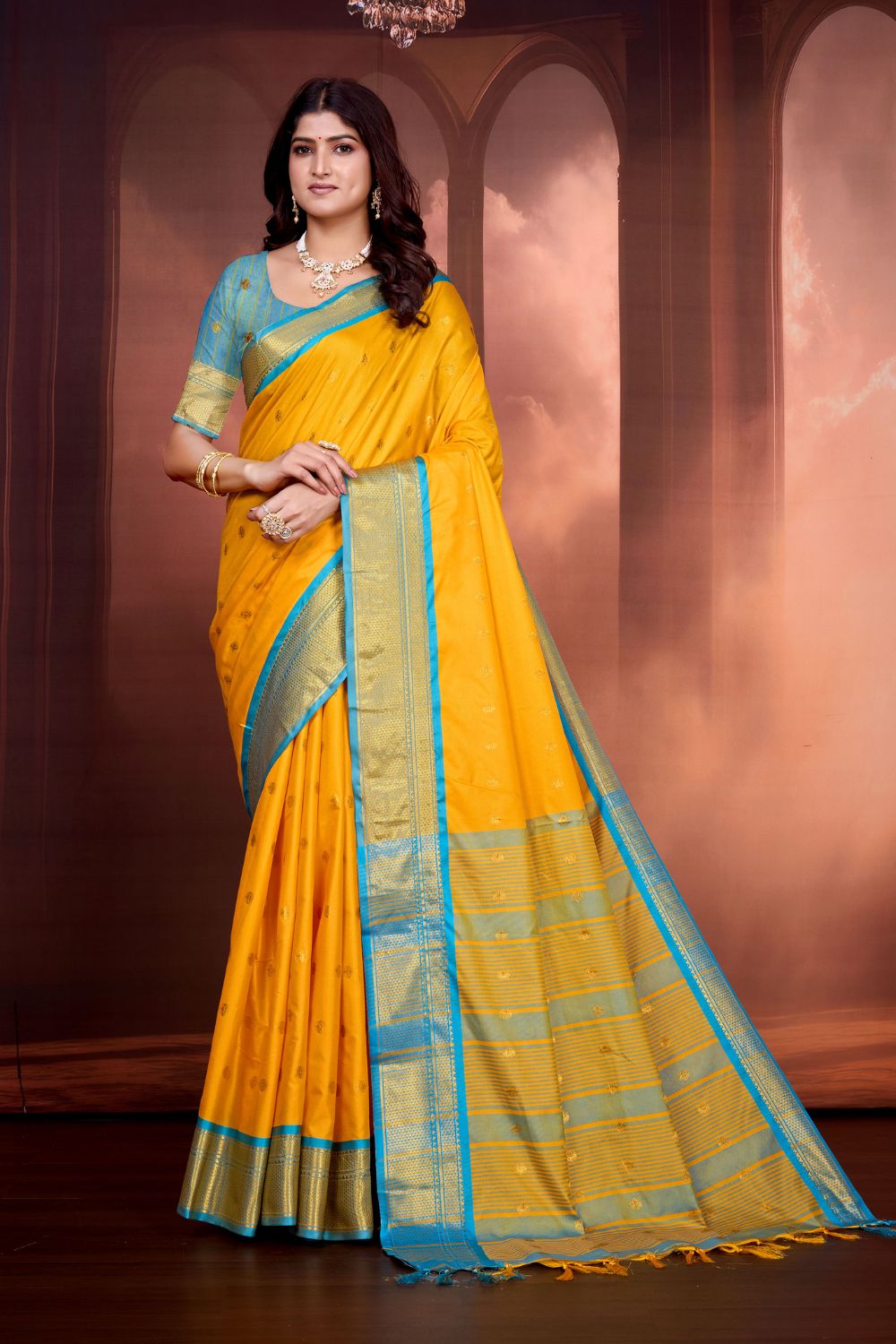 - Yellow Pure Aura South Soft Silk Pattu Saree