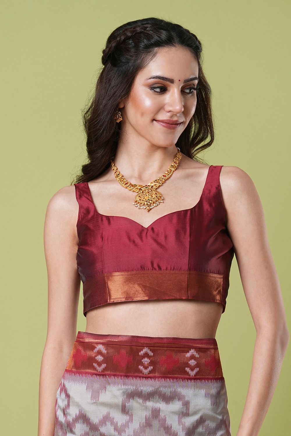 The blouse worn by the model might be for modelling purpose only. Check the image of the blouse piece to understand how the actual blouse piece looks like.