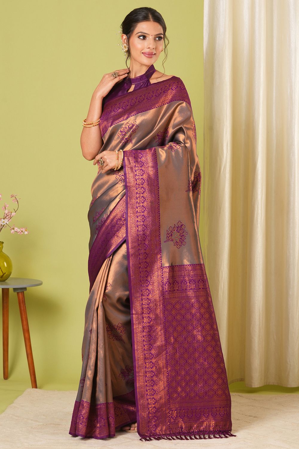 Brown Banarasi saree
