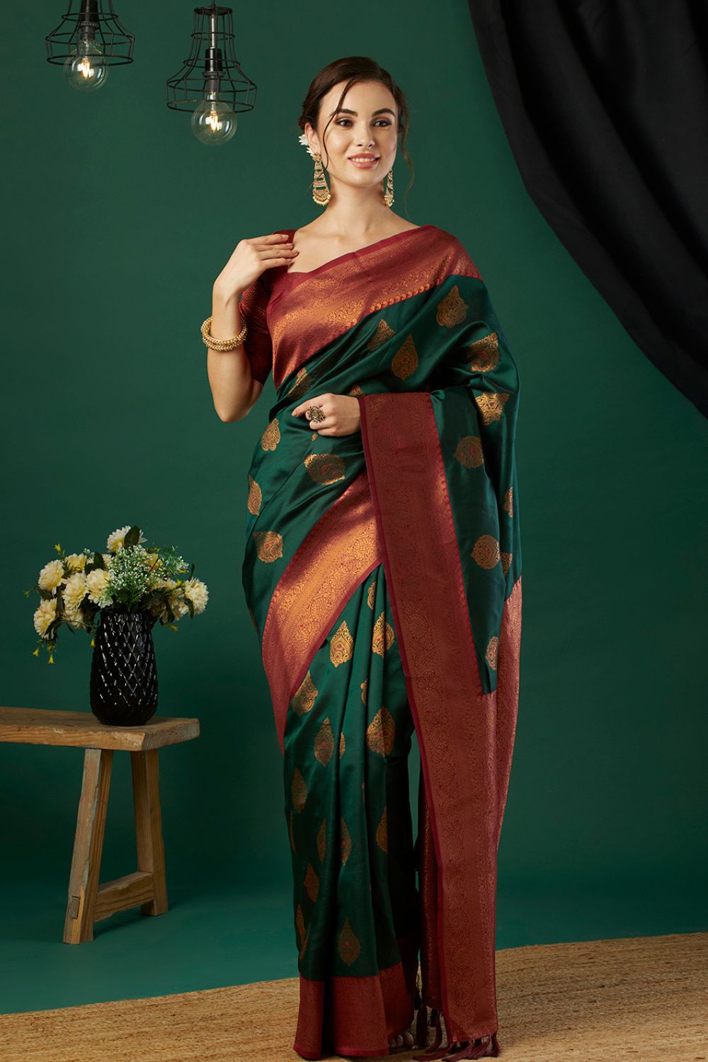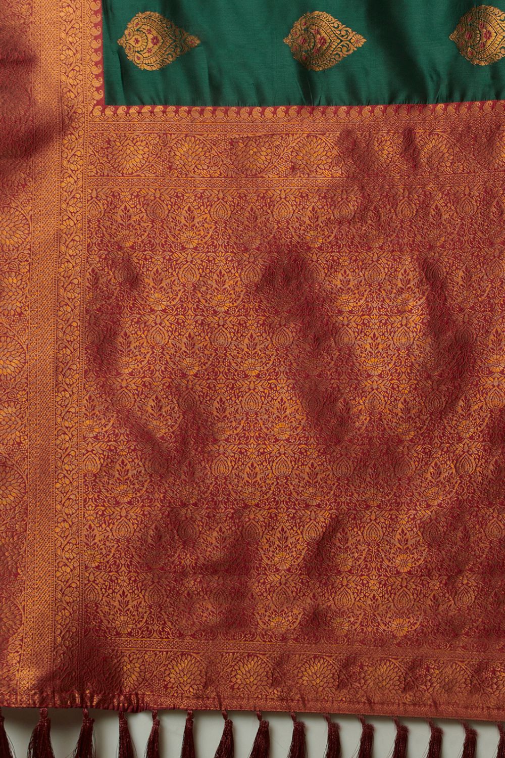- Border & Pallu: Rich Maroon with intricate zari weaving