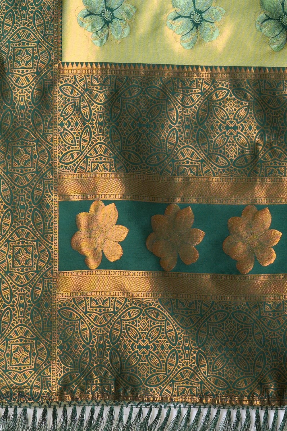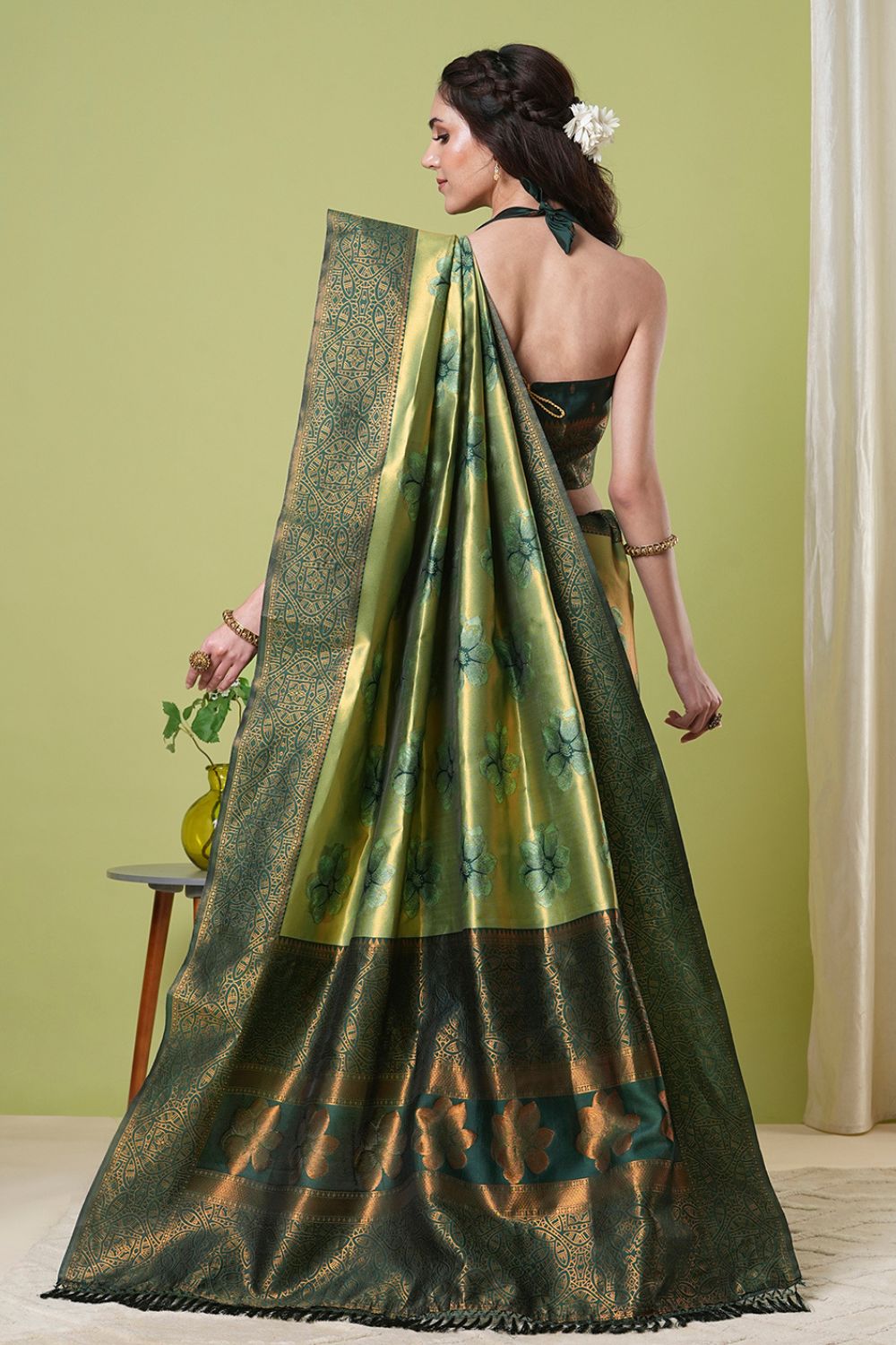 The blouse worn by the model might be for modelling purpose only. Check the image of the blouse piece to understand how the actual blouse piece looks like.