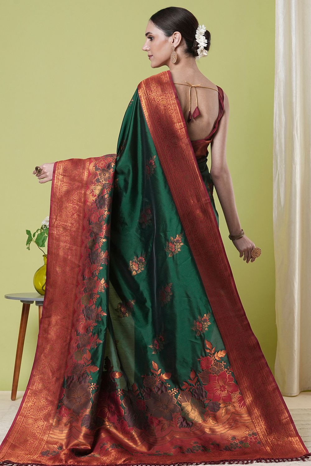 The blouse worn by the model might be for modelling purpose only. Check the image of the blouse piece to understand how the actual blouse piece looks like.