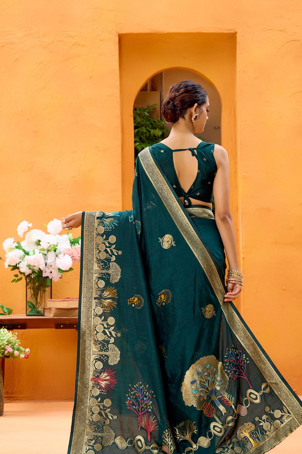The blouse worn by the model might be for modelling purpose only. Check the image of the blouse piece to understand how the actual blouse piece looks like.