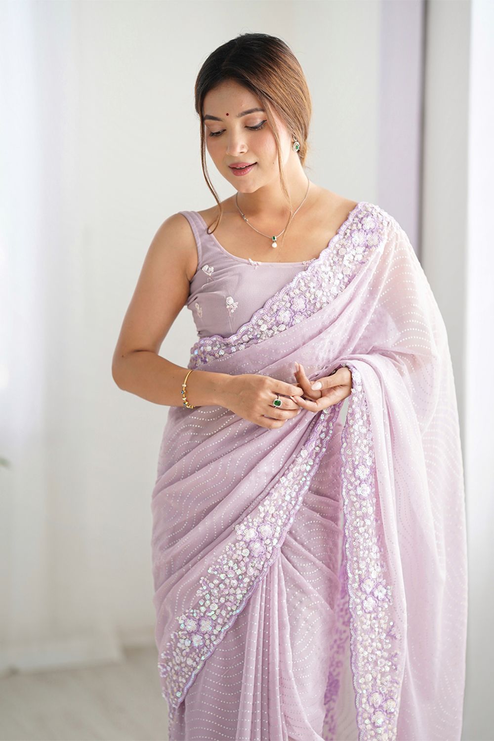 - Lilac georgette saree