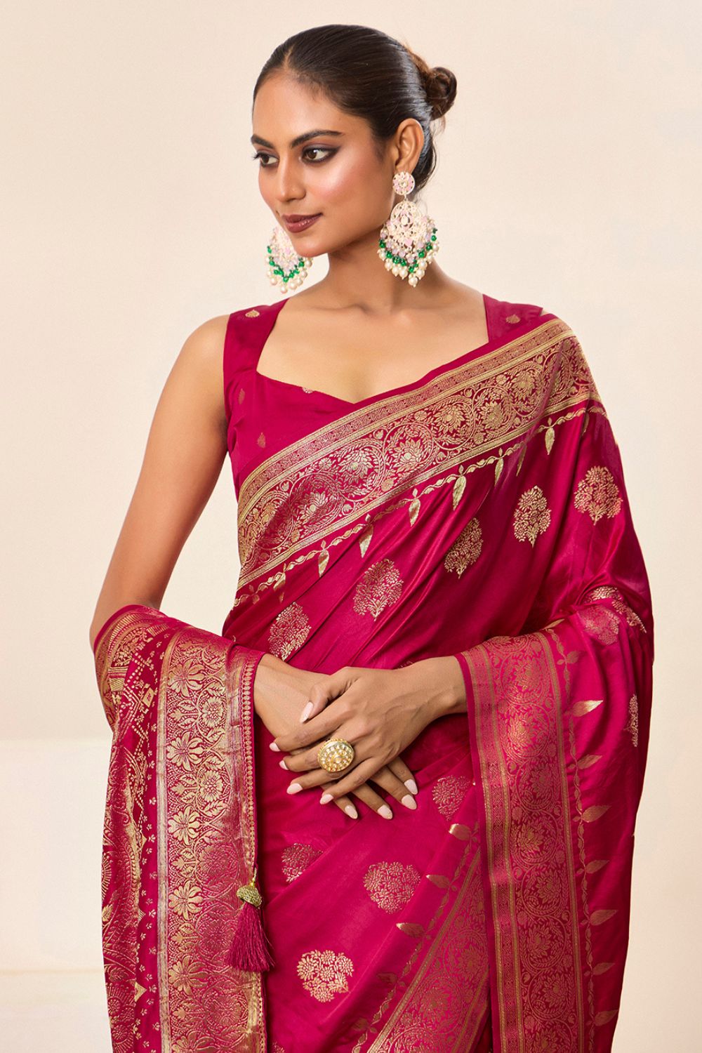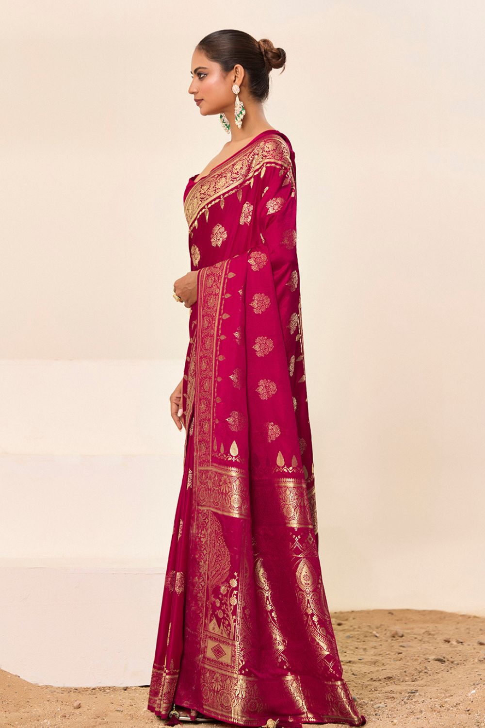 Magenta Pink Satin Silk Saree