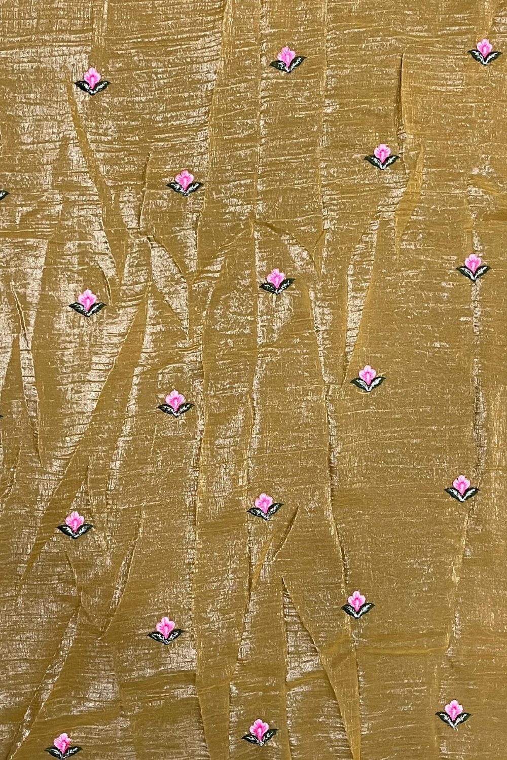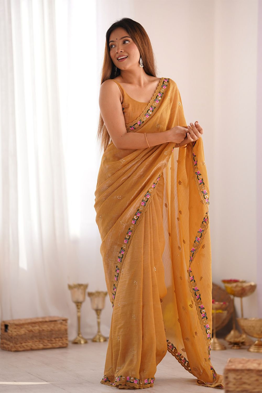 Mustard Sequins Silk Embroidery Thread Work Saree