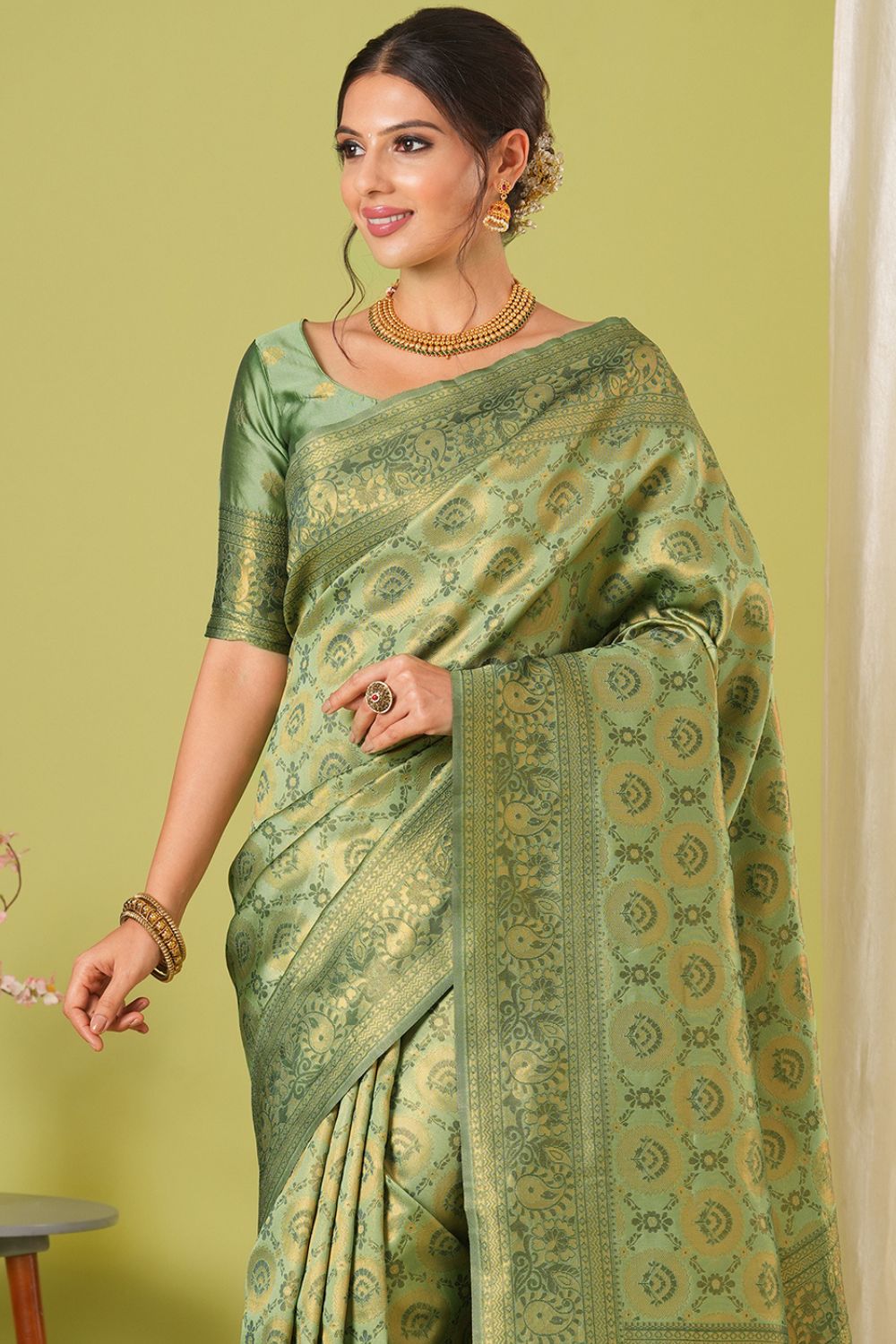 The blouse worn by the model might be for modelling purpose only. Check the image of the blouse piece to understand how the actual blouse piece looks like.