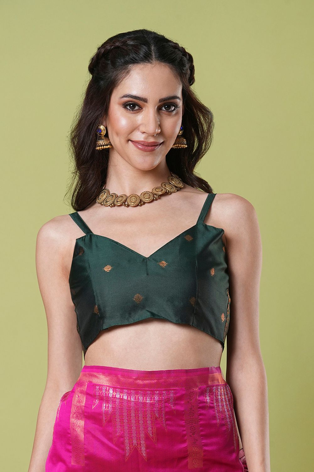 The blouse worn by the model might be for modelling purpose only. Check the image of the blouse piece to understand how the actual blouse piece looks like.