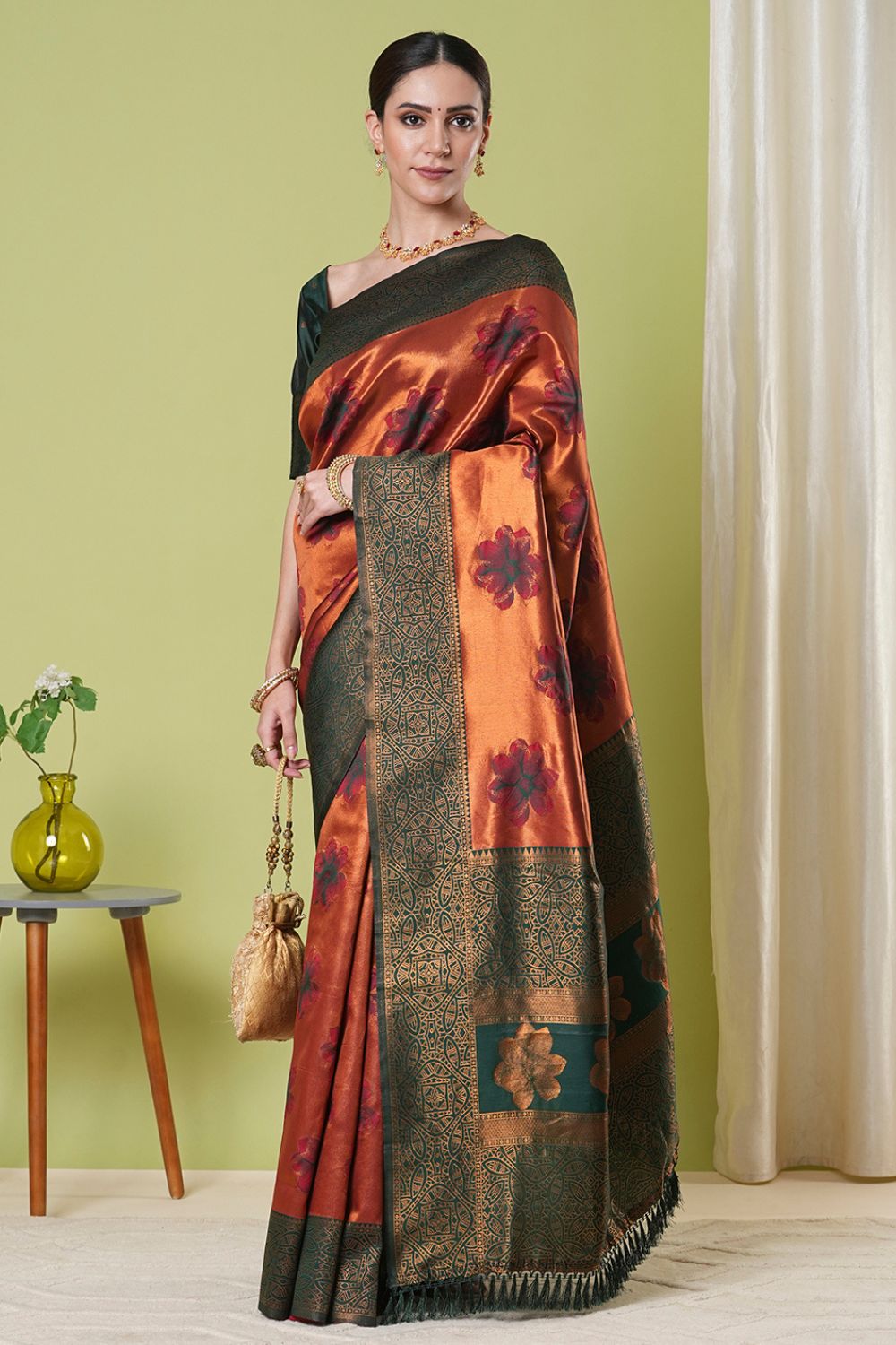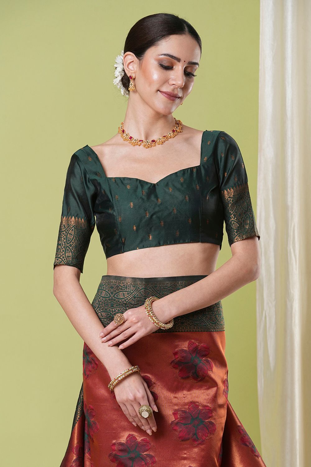The blouse worn by the model might be for modelling purpose only. Check the image of the blouse piece to understand how the actual blouse piece looks like.