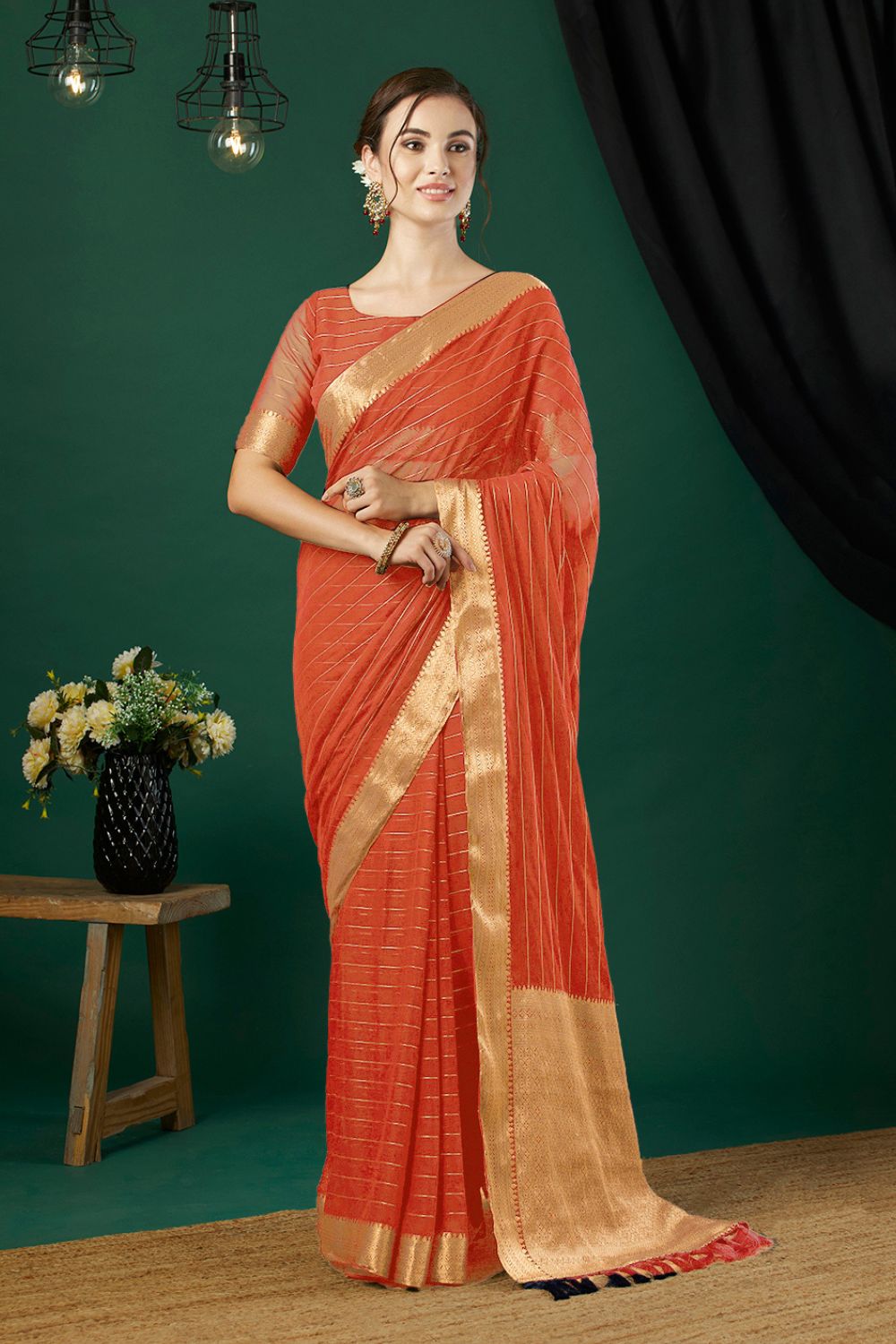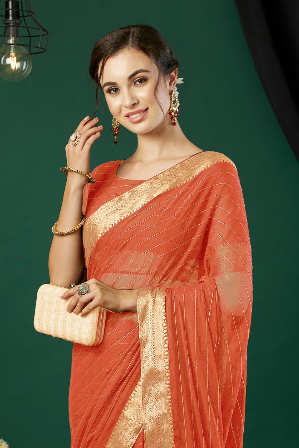 Embrace sheer luxury with our Chiffon Silk Saree. Flowing effortlessly with every step, this saree epitomizes grace and allure. Crafted from premium chiffon silk, it offers a lightweight feel and subtle shimmer, perfect for making a statement at any event.