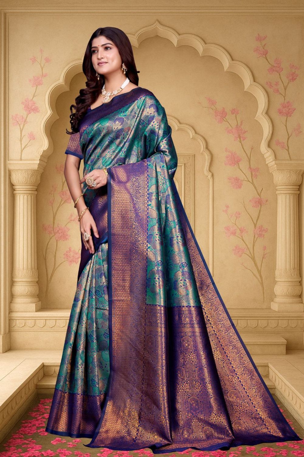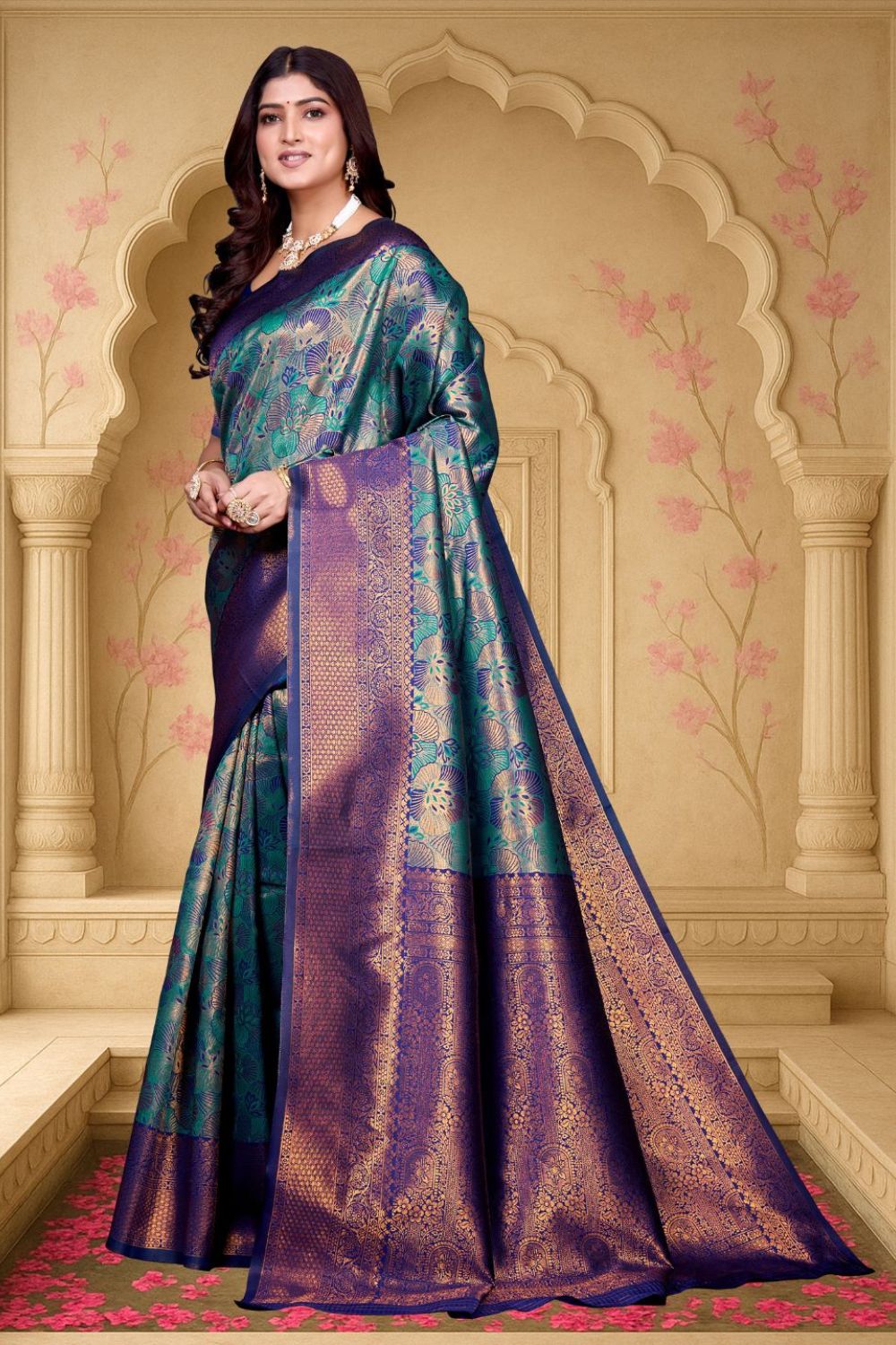 Teal Blue Pure Kanjeevarm Banarasi Soft Silk Saree