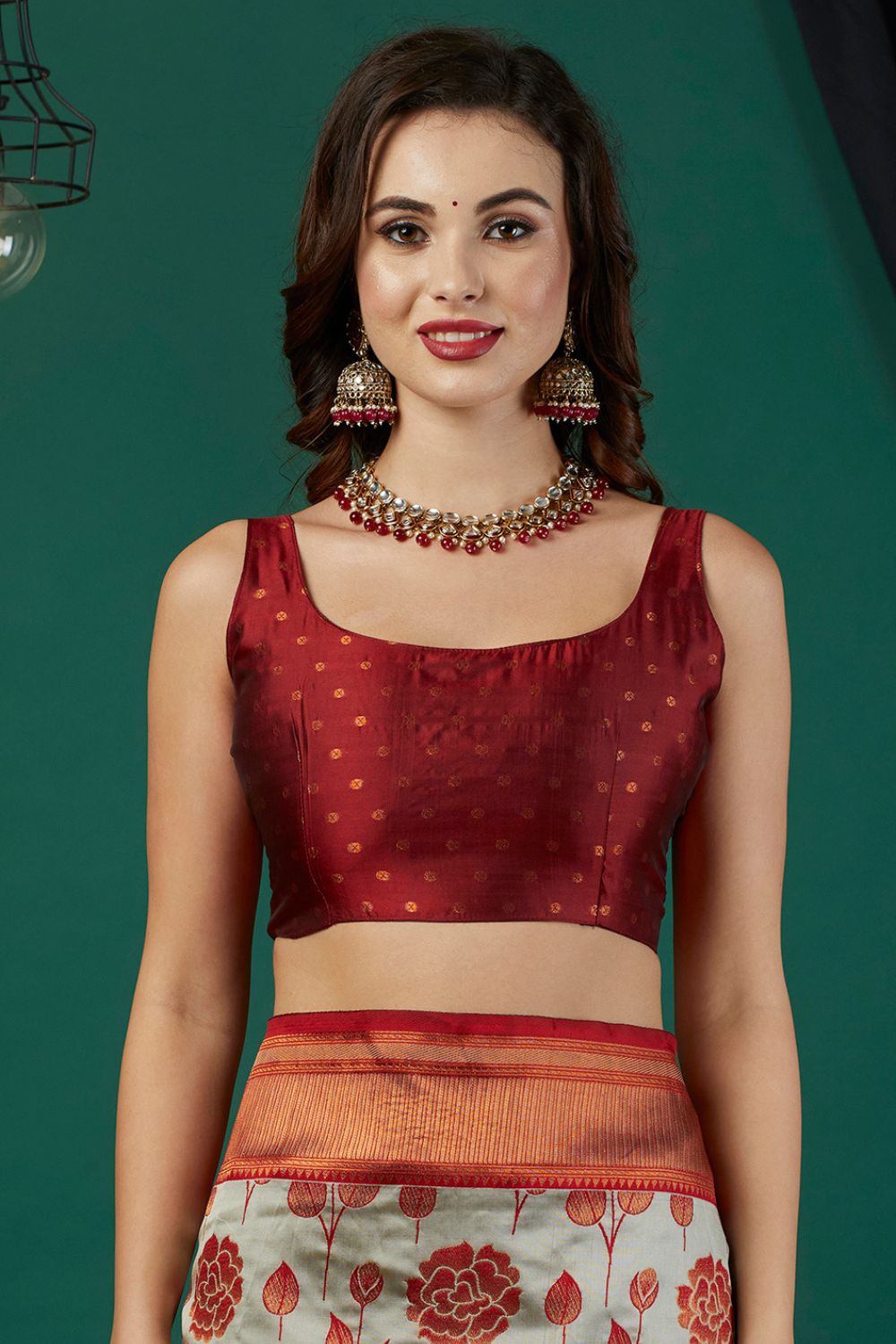 The blouse worn by the model might be for modelling purpose only. Check the image of the blouse piece to understand how the actual blouse piece looks like.