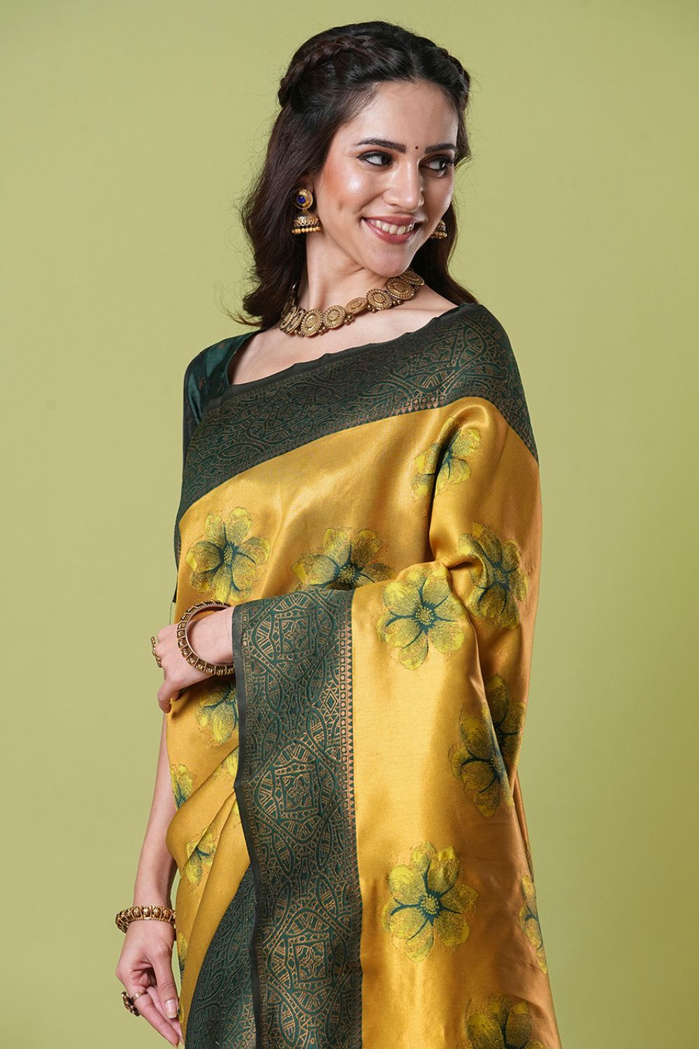 The blouse worn by the model might be for modelling purpose only. Check the image of the blouse piece to understand how the actual blouse piece looks like.