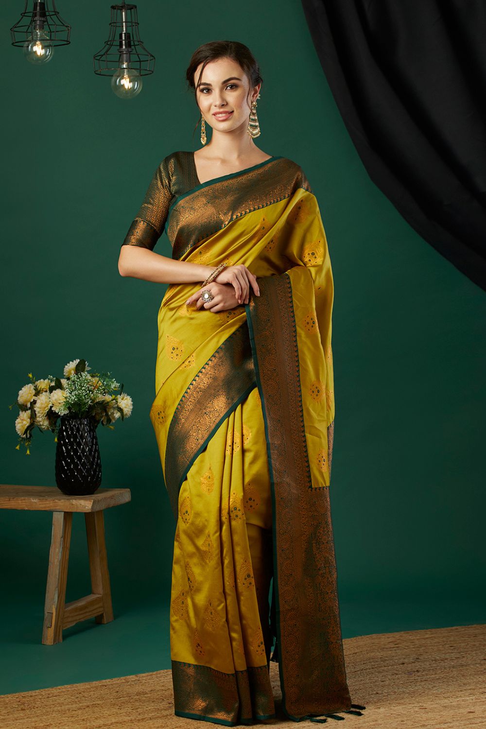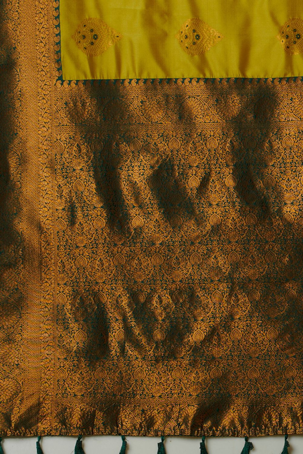 - Border & Pallu: Deep Bottle Green with intricate zari designs